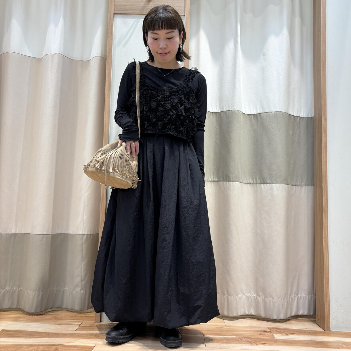 ふんわりとしたファンシーヤーンが華やかな印象を