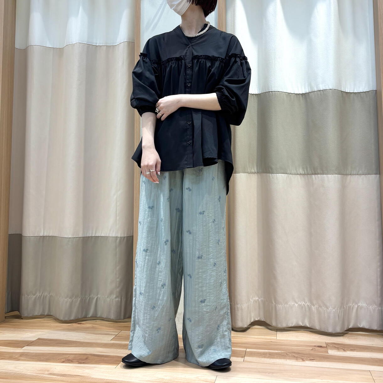ふわりと纏うフリル切り替えが大人可愛いシャツ。