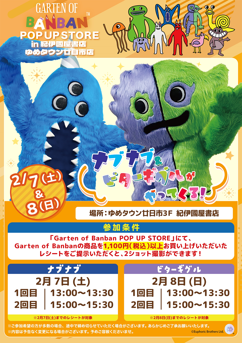 参加条件:1/23(金)~開催の「Garten of Banban POP UP STORE」にてグッズを税込1,100円以上お買い上げの方対象