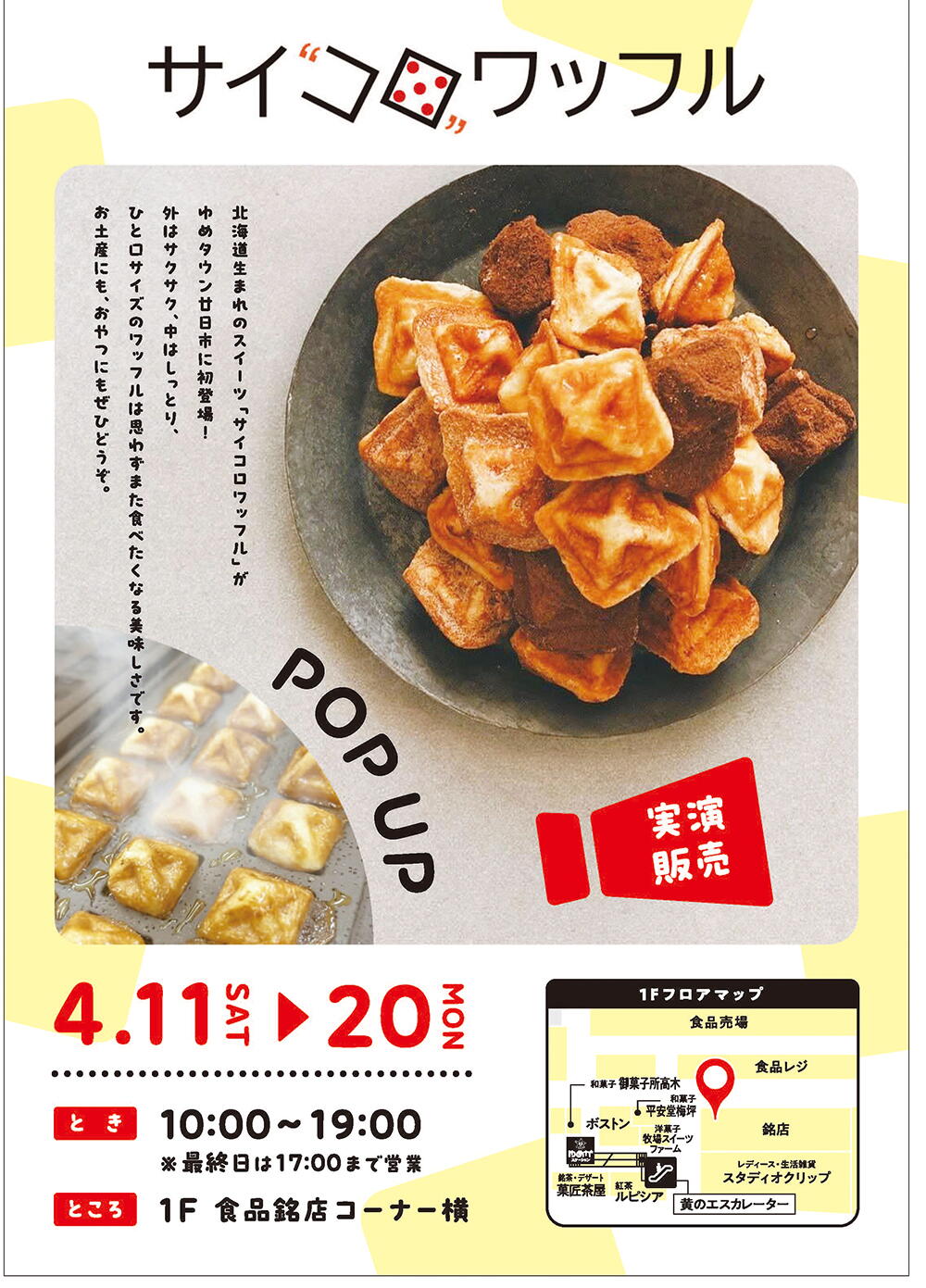北海道生まれのスイーツ「サイコロワッフル」がゆめタウン廿日市に初登場!