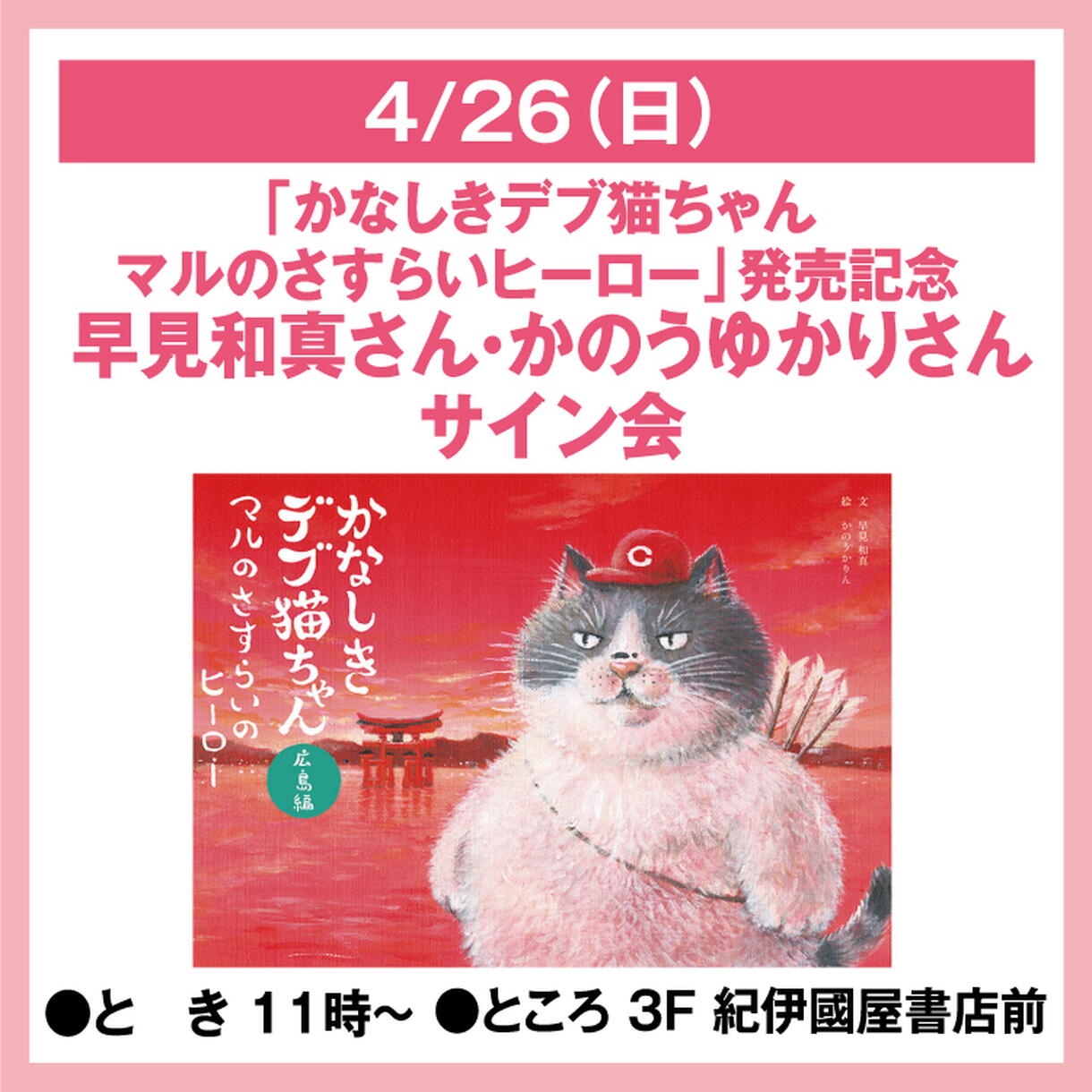 紀伊國屋書店ゆめタウン廿日市店にて対象書籍をお買い上げのお客様に参加整理券をお渡しします。