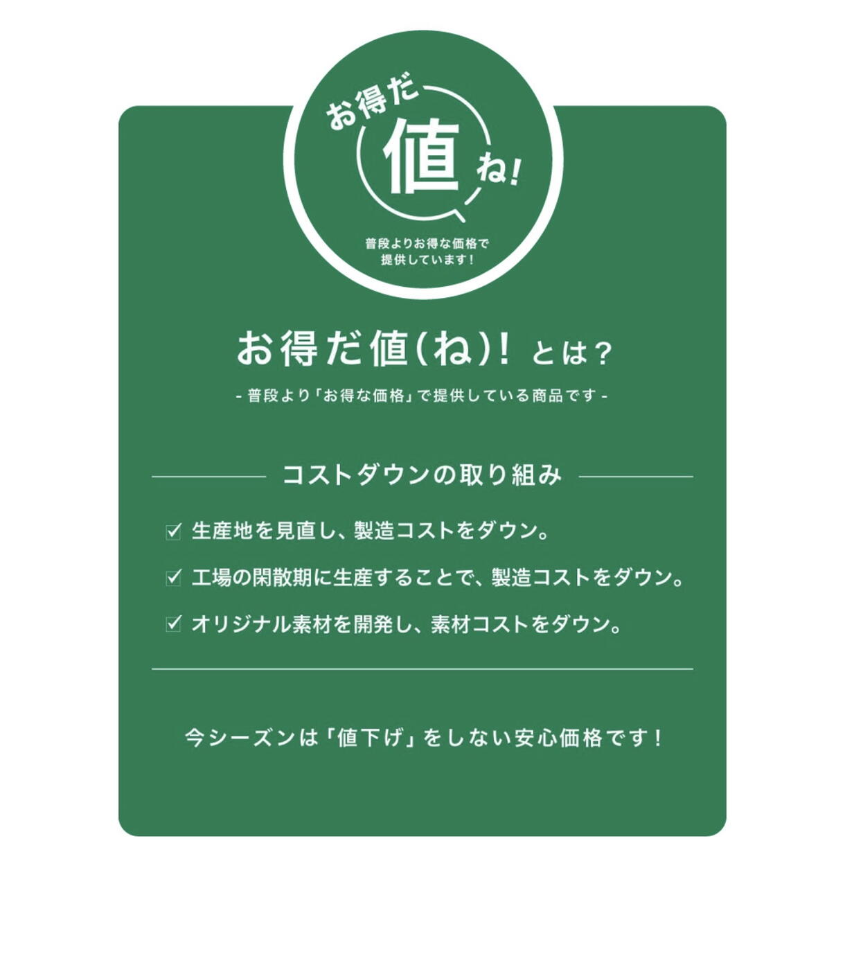 今回は【レディス】から、お得な価格で叶える「お得だ値!」シリーズのセットアイテムをご紹介♪