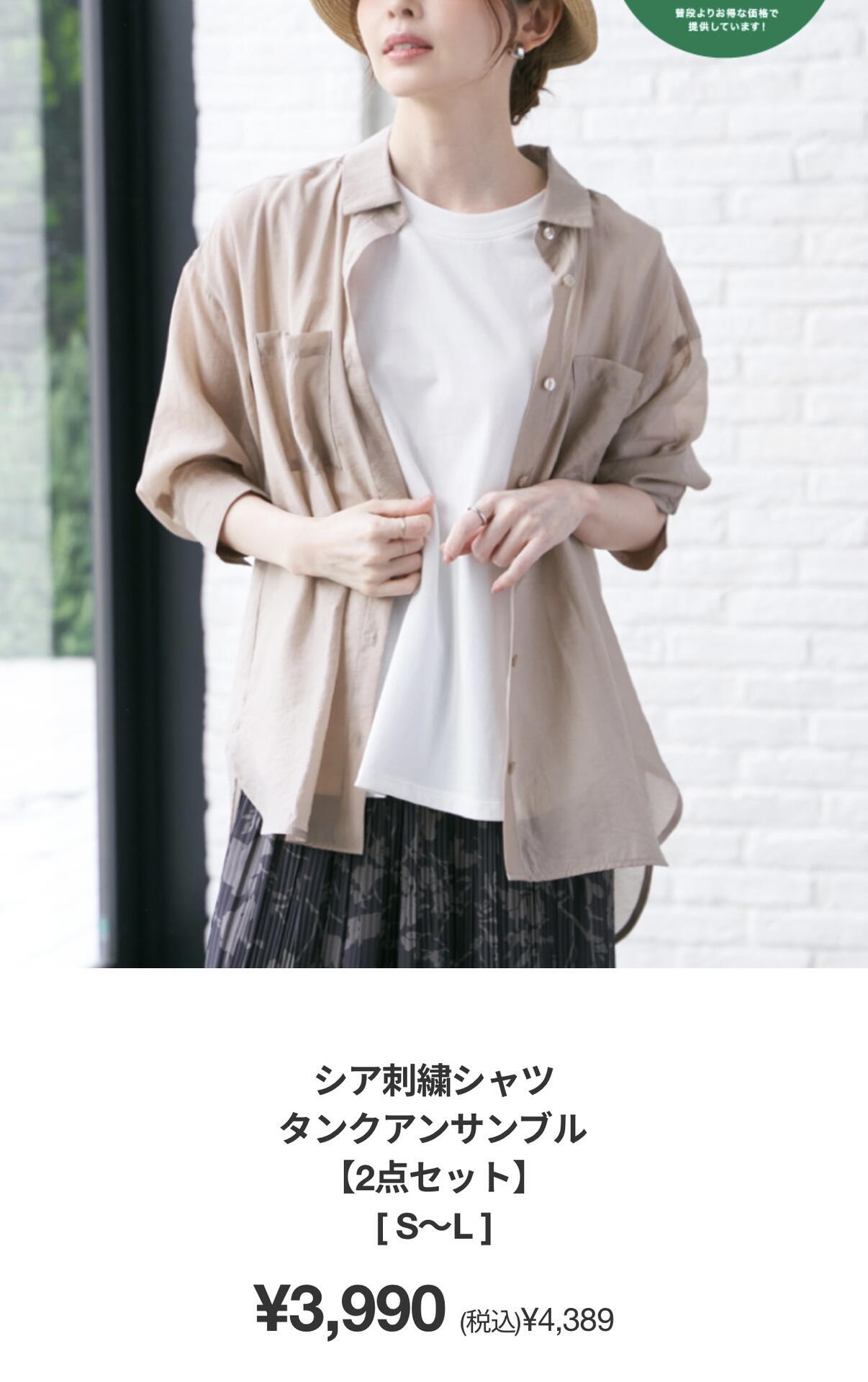 透け感のある涼しげなシャツと、単品でも活躍するタンクトップの2点セットでおトク感UP。