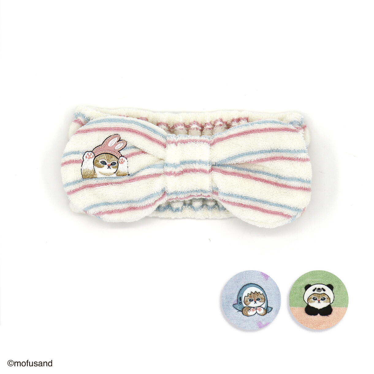 サメにゃん、うさにゃん、パンダにゃんがそれぞれちょこんと刺繍されているヘアーバンドです。