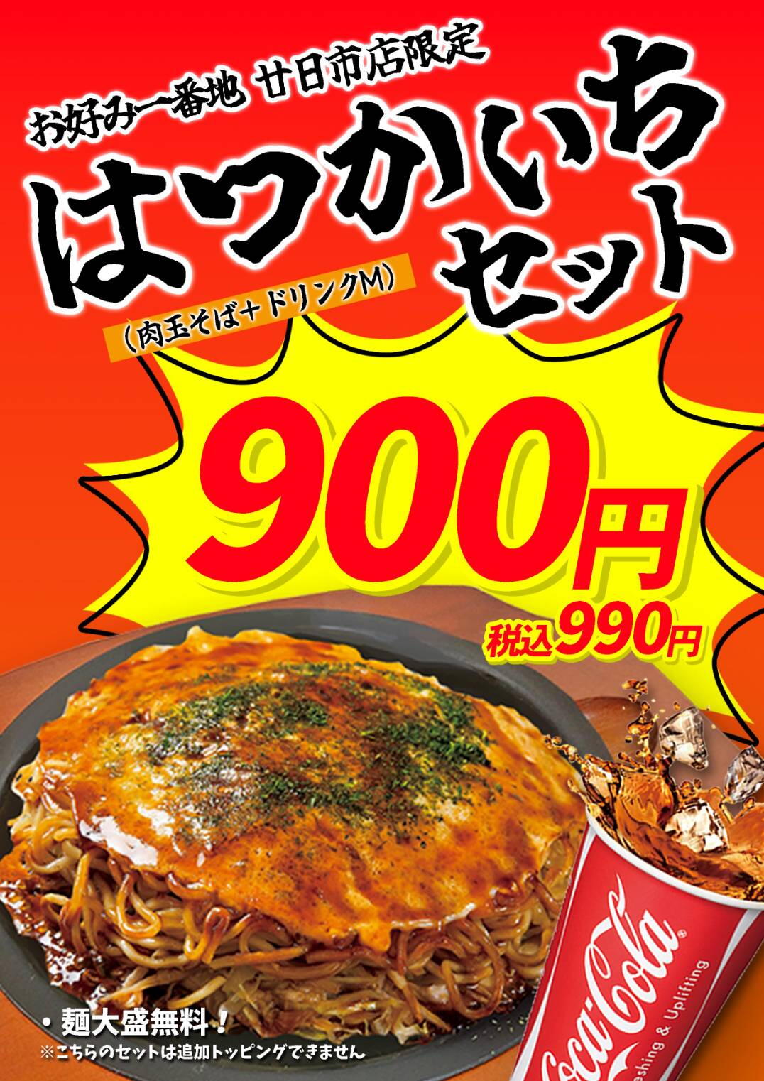 肉玉そばプラスドリンクで、なんと税込990円!(税抜900円)