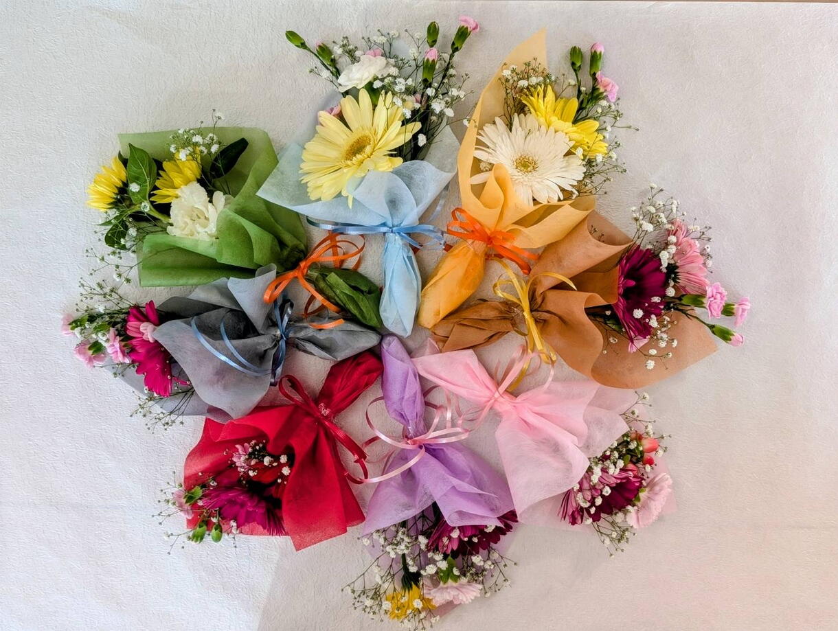 1束をイロイロな色で,8束で,花の輪にしてみました♪