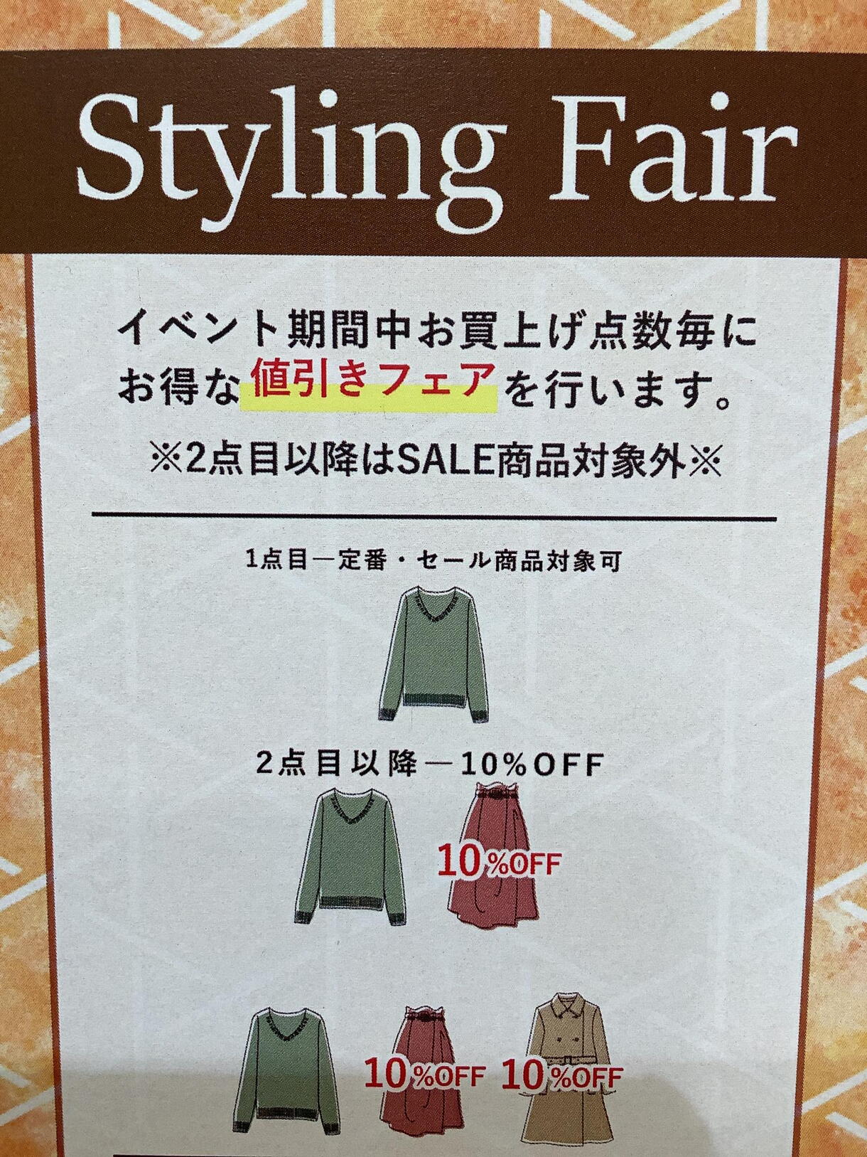 M2センソユニコでは、2点目からのお品が、10%offになるスタイリングフェアを開催致します☆