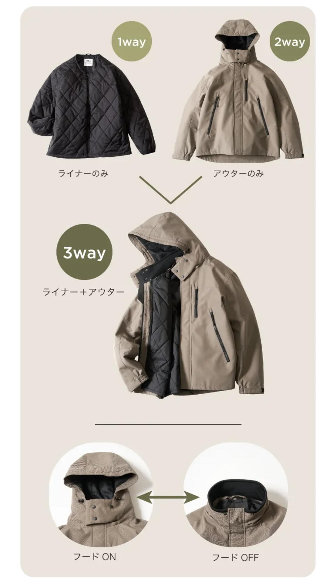 2WAY仕様で気温対応できるものや、機能性中綿など、ここでしか買えない必見アイテムです!