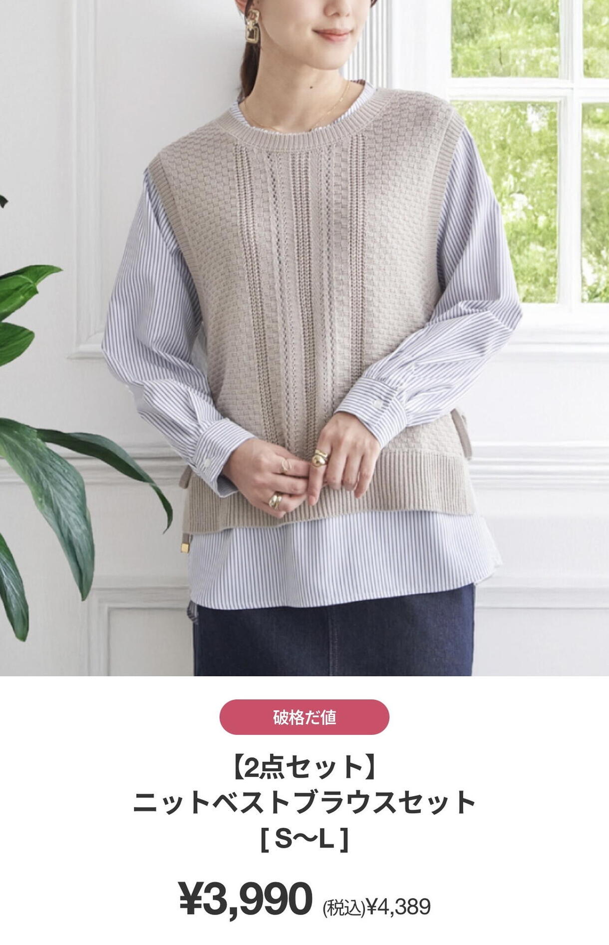 【2点セット】ニットベストブラウスセット