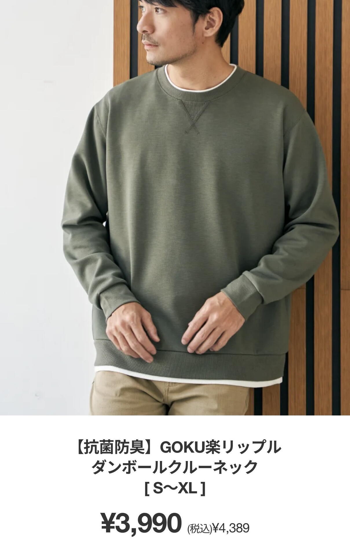 【抗菌防臭】GOKU楽リップルダンボールクルーネック