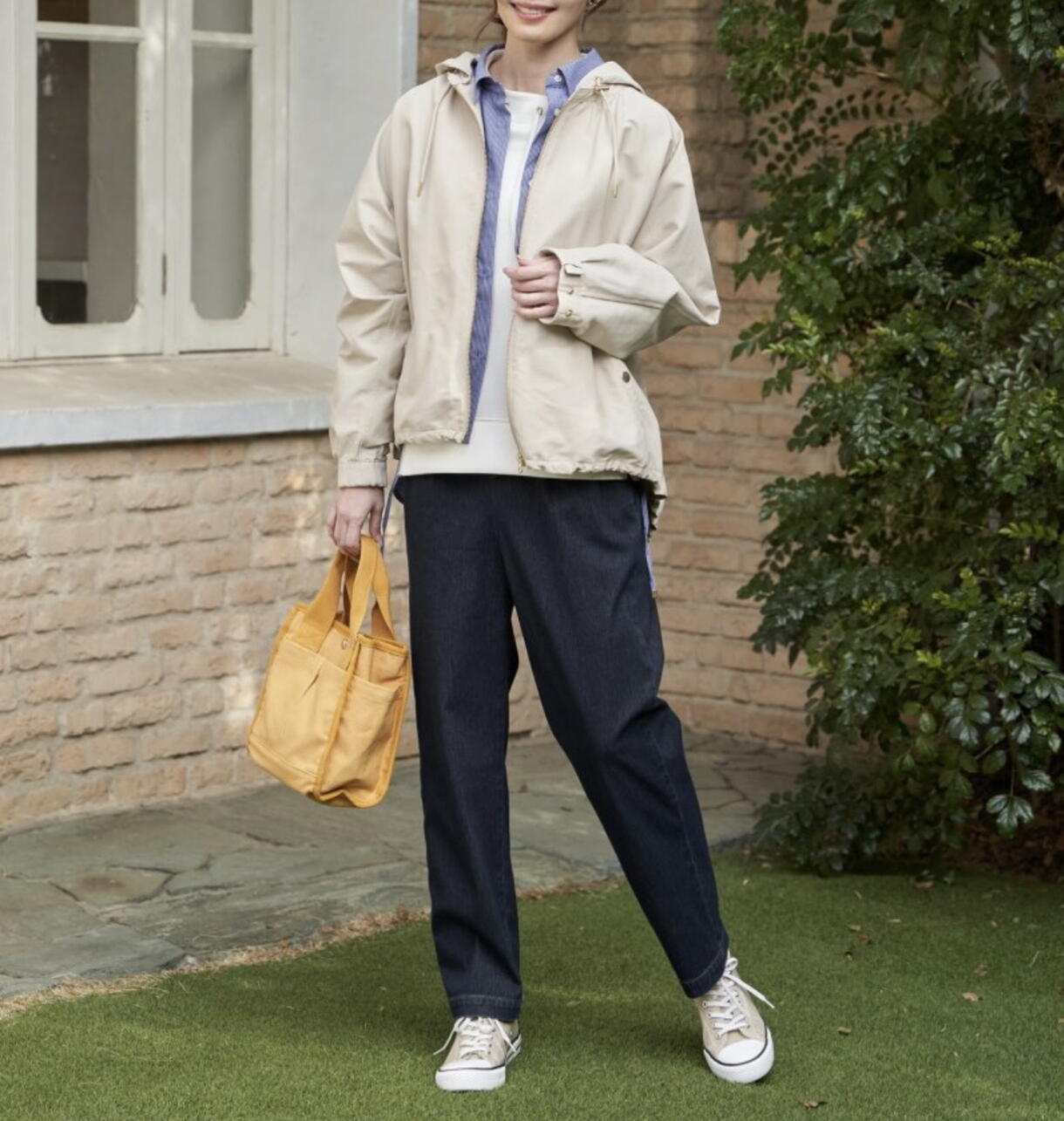 マスタードカラーのトートが華やかな彩りを添え、日常のお出かけも心地良く楽しめます!