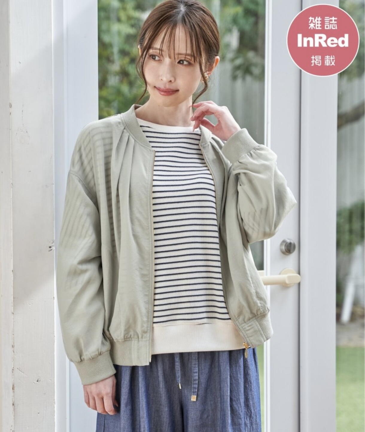 今回は【レディス】から、雑誌InRed5月号掲載されている、ゴールドジップが品のある軽やかなシアーブルゾンに、ボーダー柄のプルオーバーを合わせた着こなしのスタイルをご紹介します!