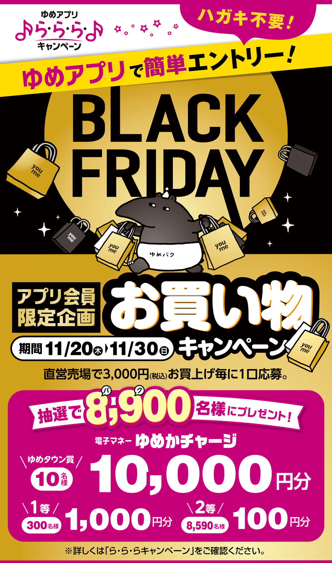 【ゆめアプリ ら・ら・ら・キャンペーン】『BLACK FRIDAY』アプリ会員限定企画 お買い物キャンペーン