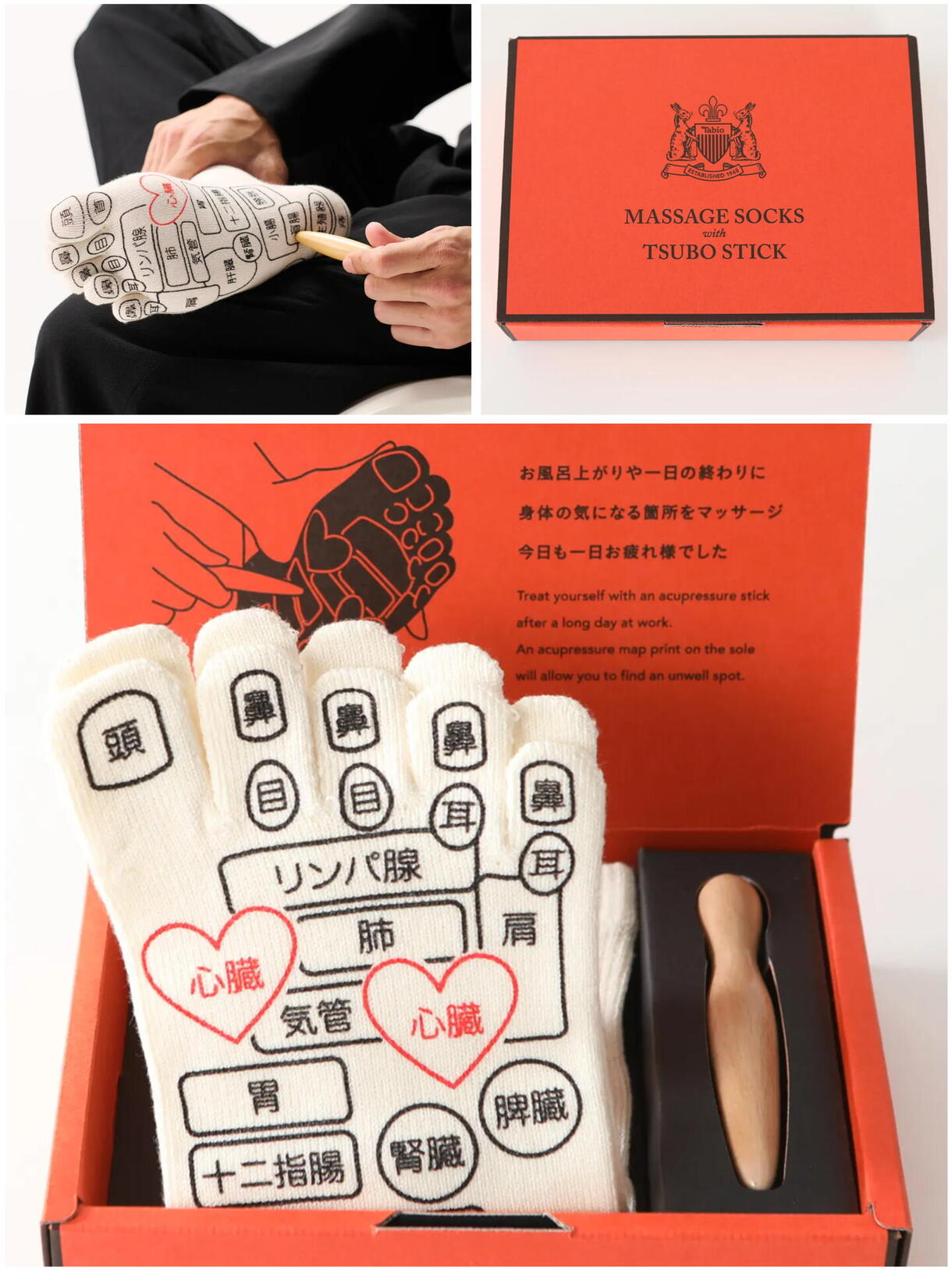 滑り止め付き五本指ソックスとツボ押し棒が入った