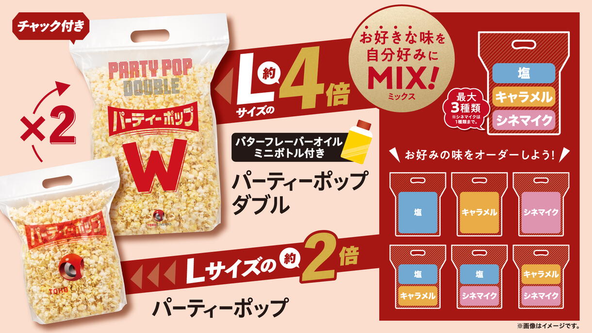 パーティーポップ・・・当社Lサイズポップコーンの約2倍!