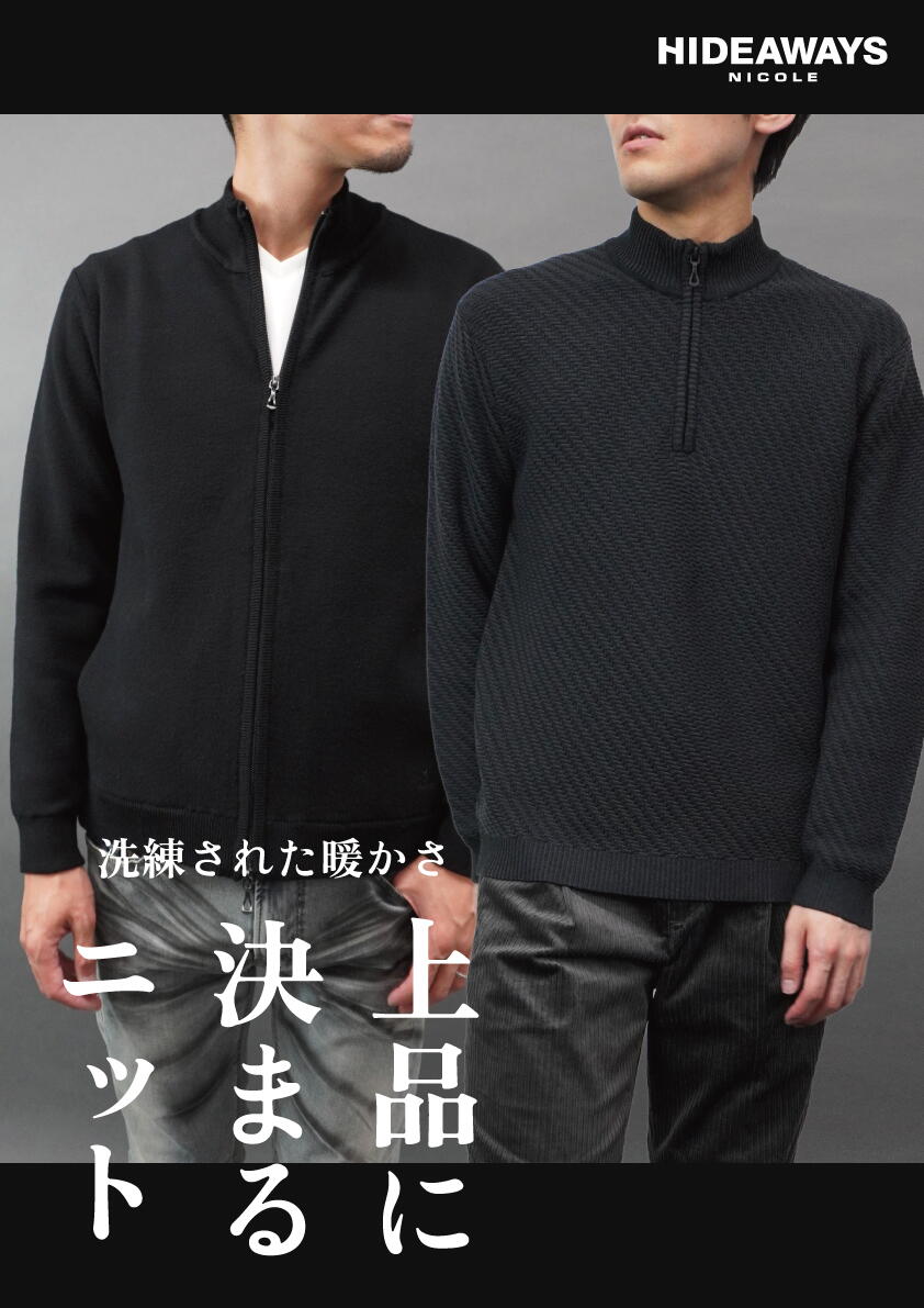 HIDEAWAYSでは秋の新作ニットが揃いましたので紹介します。