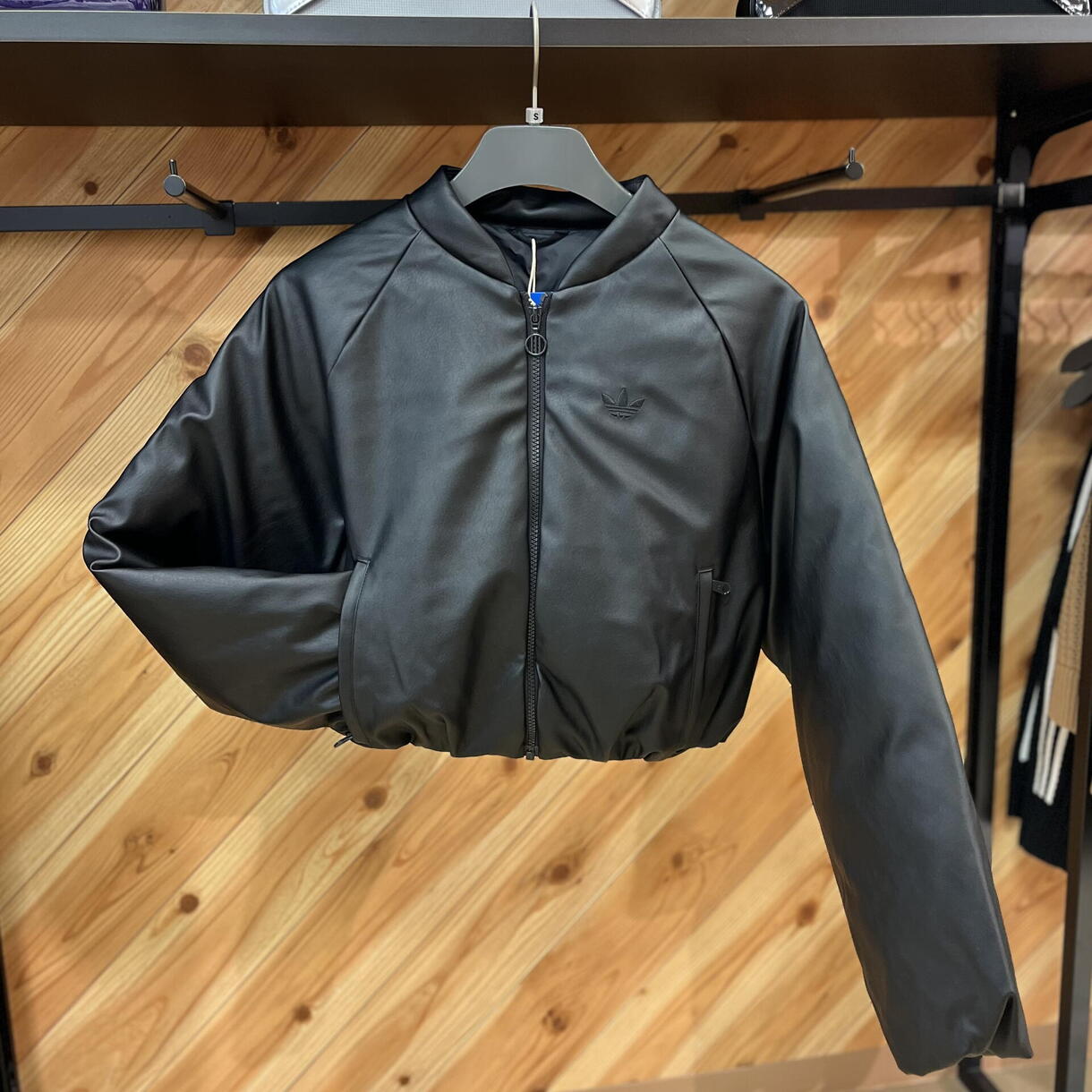 adidasのボンバージャケットは、滑らかな生地にトレンドのシルエット。