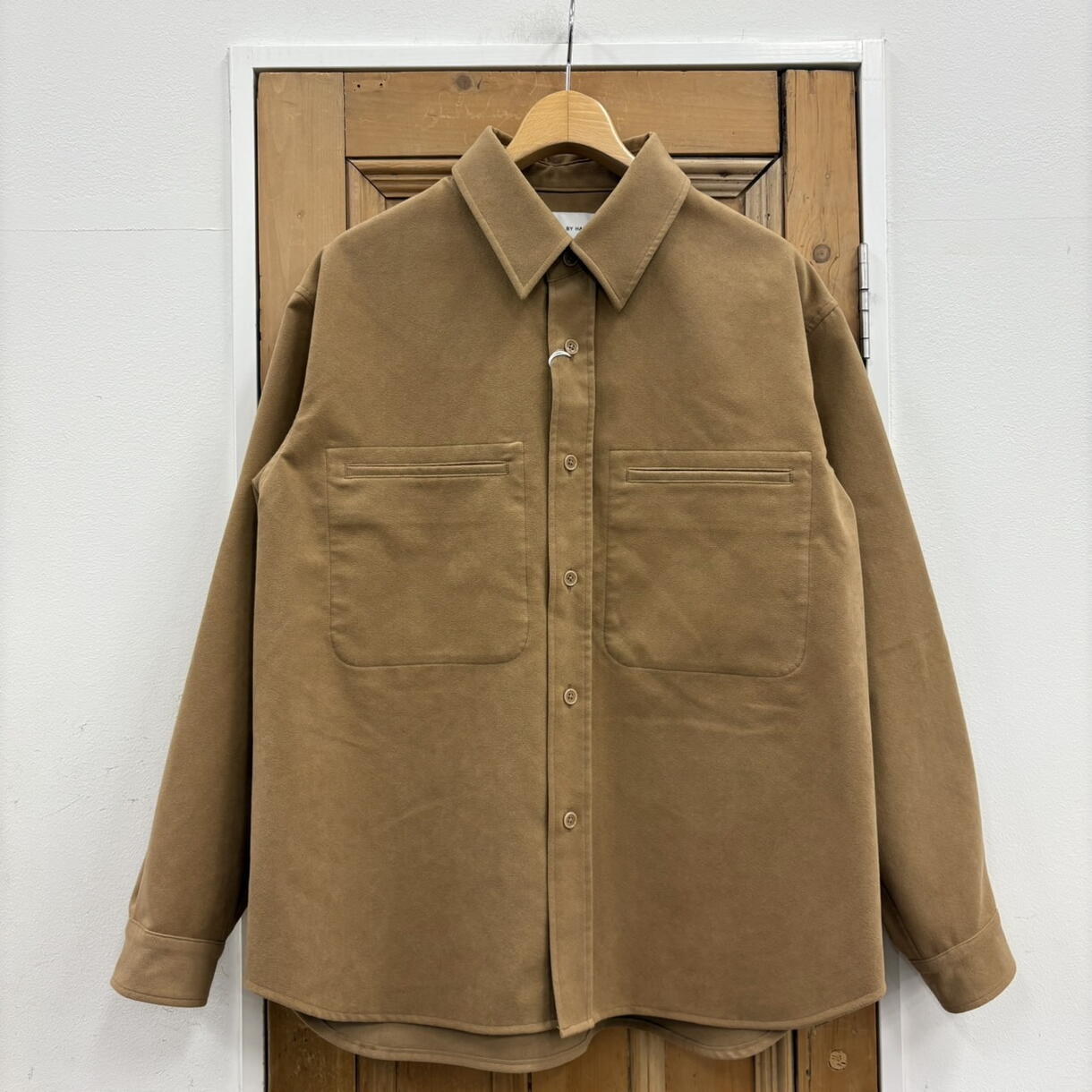 フェイクスエード素材を使用しており、一枚着としても羽織りとしても使えるシャツブルゾンです!
