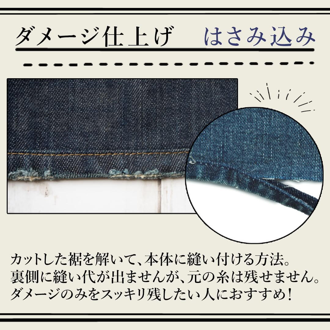ジーンズをそのままカットすると、ダメージ加工が消えてしまうことも…