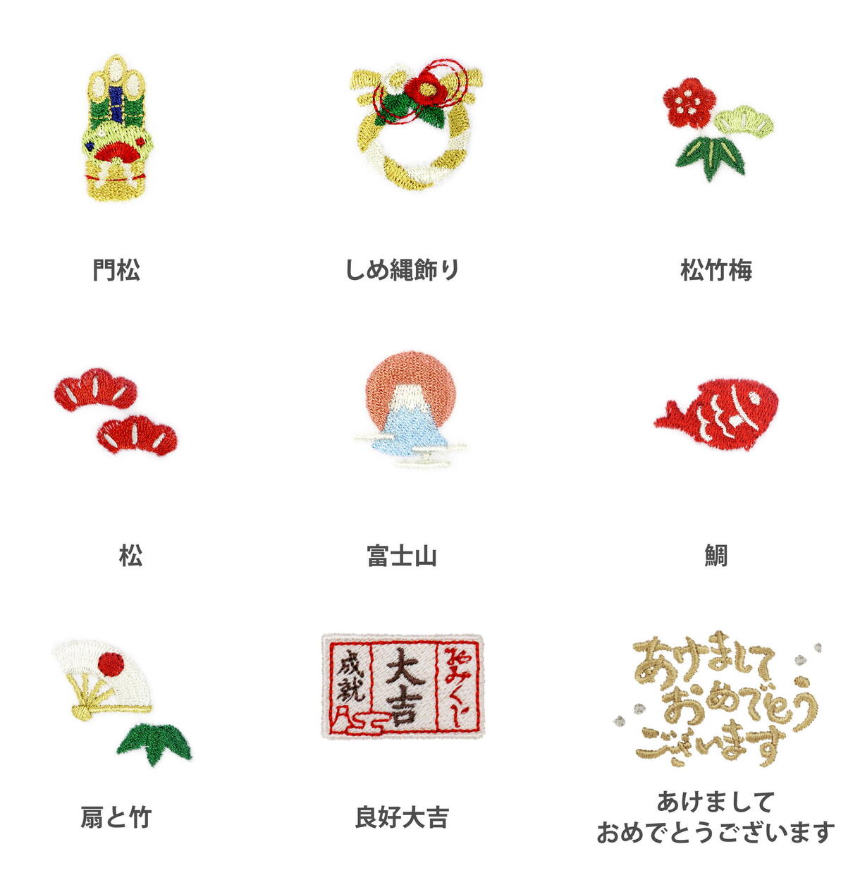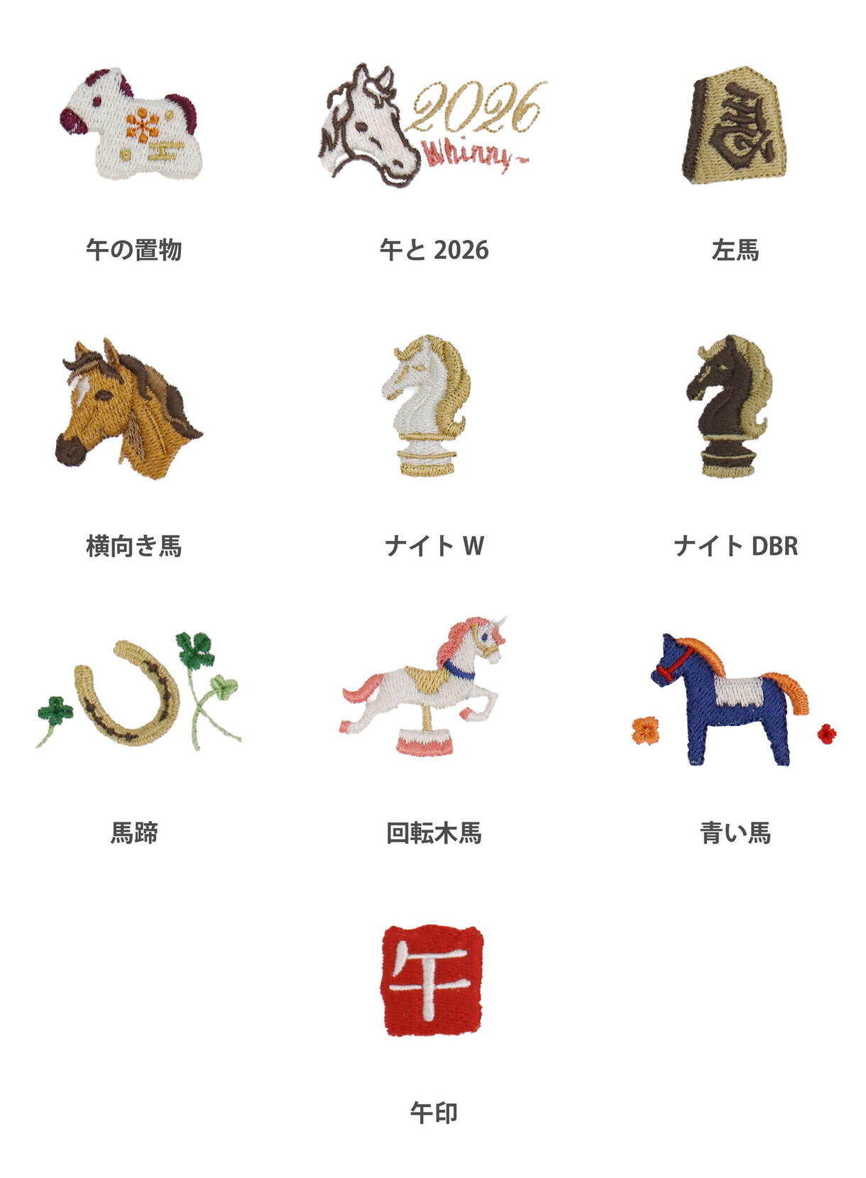 モチーフ刺繍 午年は全10種類 各550円(本体価格 500円)
