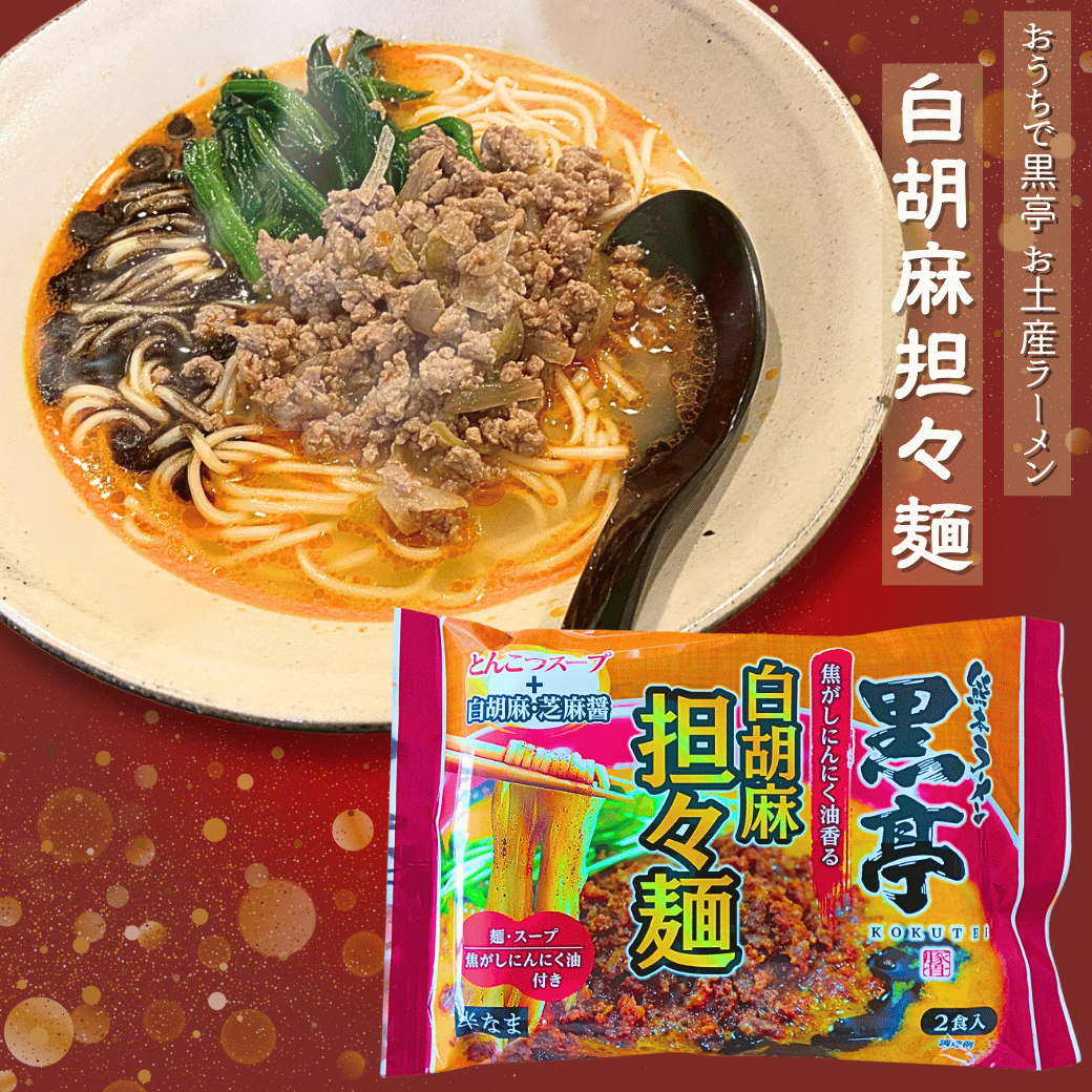 「おうちで手軽に黒亭の味が楽しめる」 黒亭のお土産ラーメンに仲間入りして以来、人気の【白胡麻担々麺】