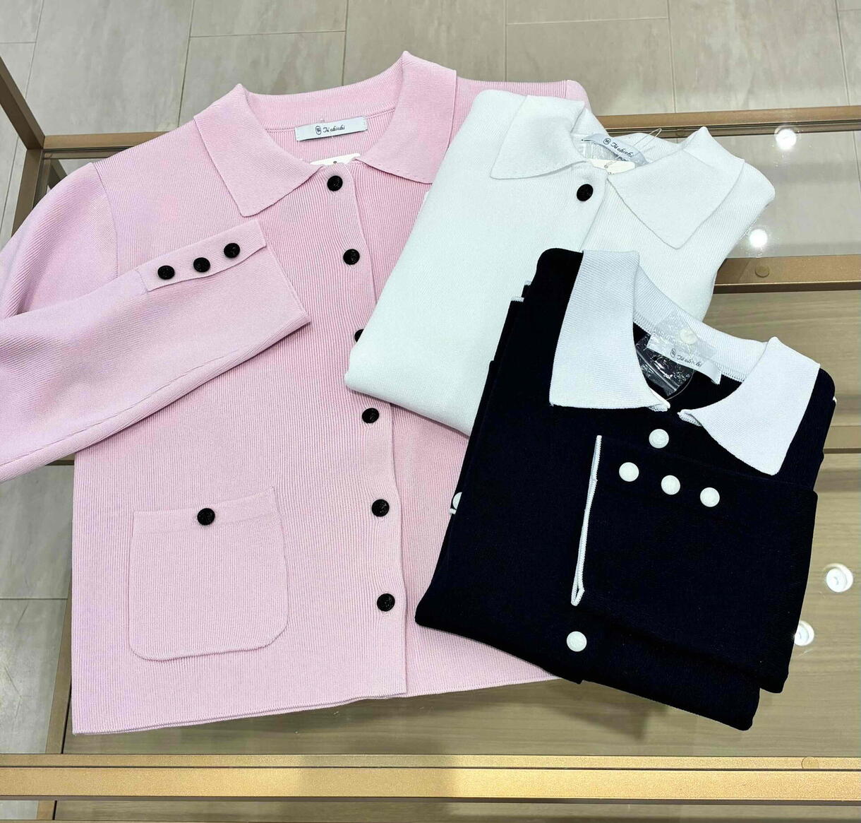 マリン調のボタンが上品なアクセントとなり、オンにもオフにも活躍します!