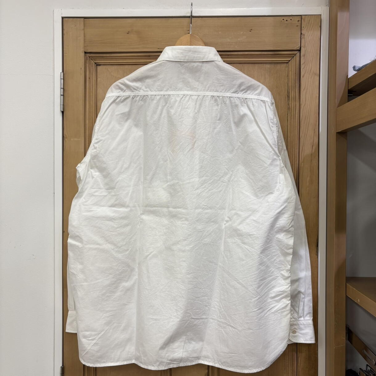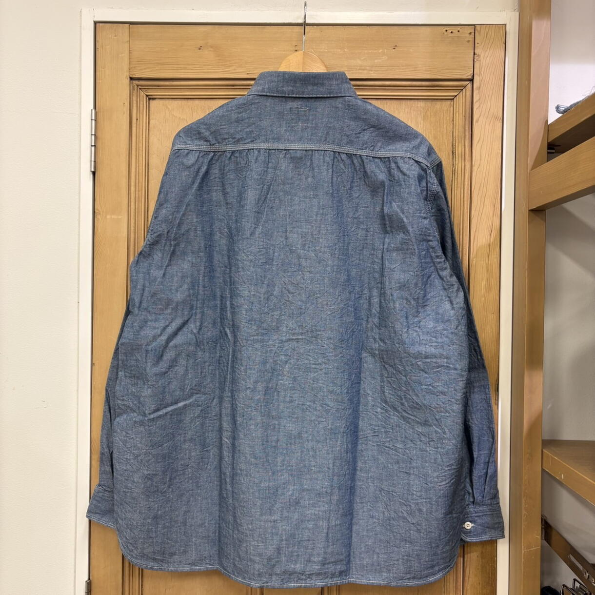 少し身幅の広いボックスシルエットのワークシャツです!
