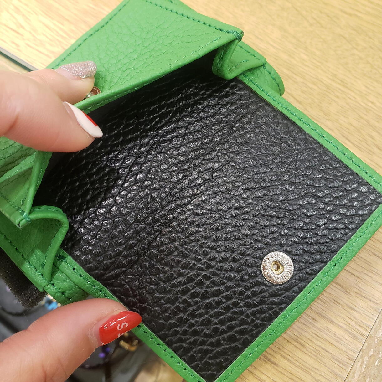 手のひらサイズで、お札・小銭・カード入れと、コンパクトながらも使い勝手の良い作りとなっています。