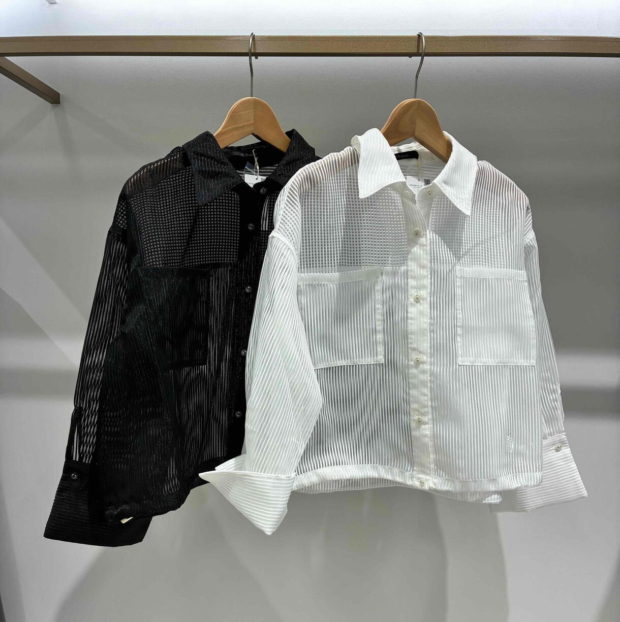 軽やかな透け感が魅力のシアーコードストライブ素材を使用したシャツ型ブルゾン。