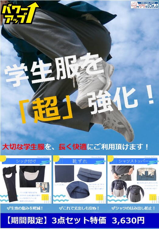 洋服のお直し/洋服の修理/補正/かけつぎ/やぶれ/制服のお直し/リメイク/着物リメイク