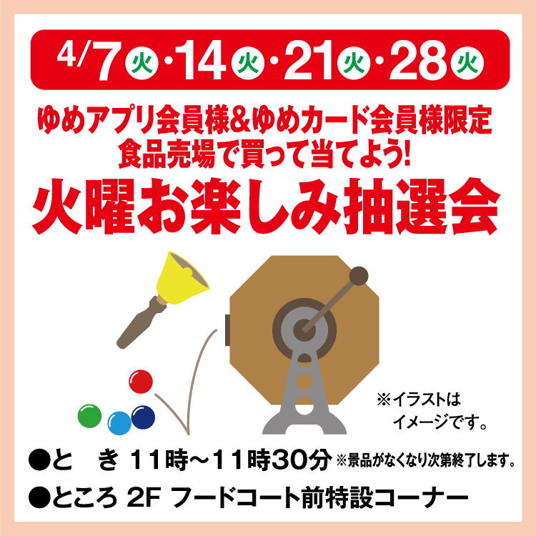 専門店毎週火曜「ゆめアプリ会員様」ゆめカード企画
