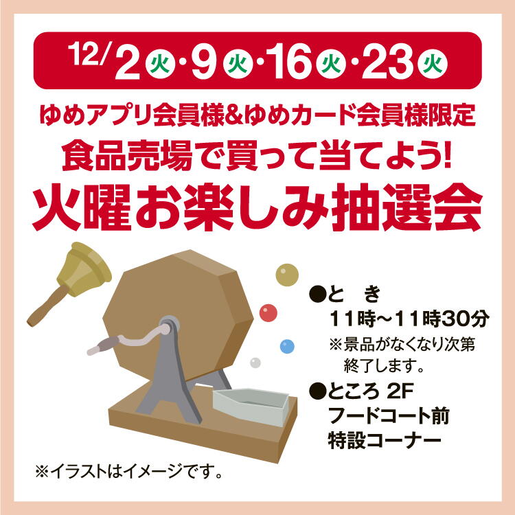 ※対象店舗・対象商品など詳細は、ゆめアプリ「ら・ら・ら・キャンペーン」をご覧ください。