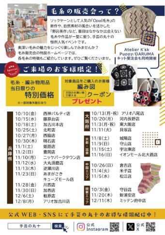 11/1(土) 毛糸の販売会 手芸の丸十姫路店