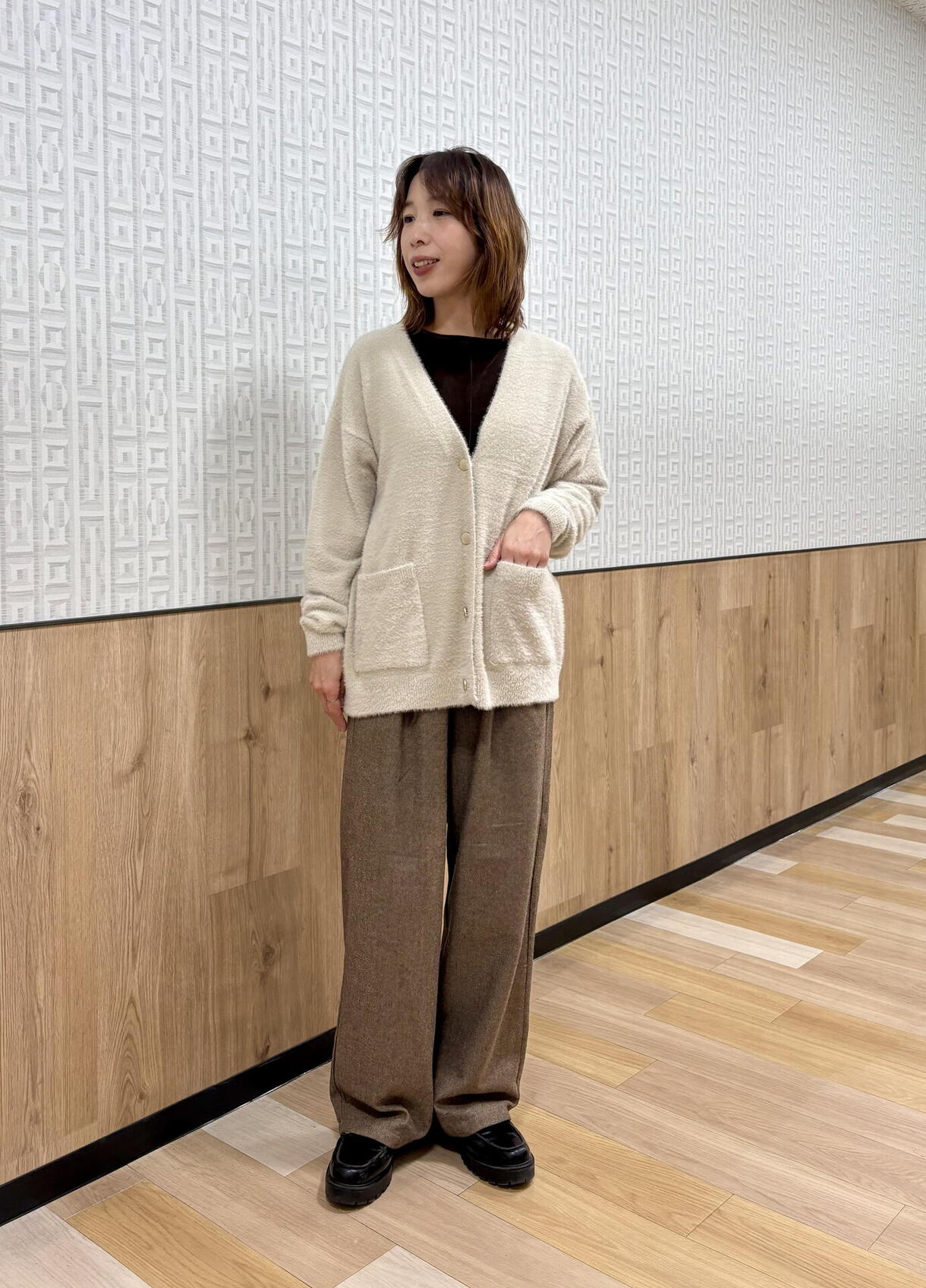 ふわっと軽やかで上品な印象を与えるフェザーニットカーディガン。