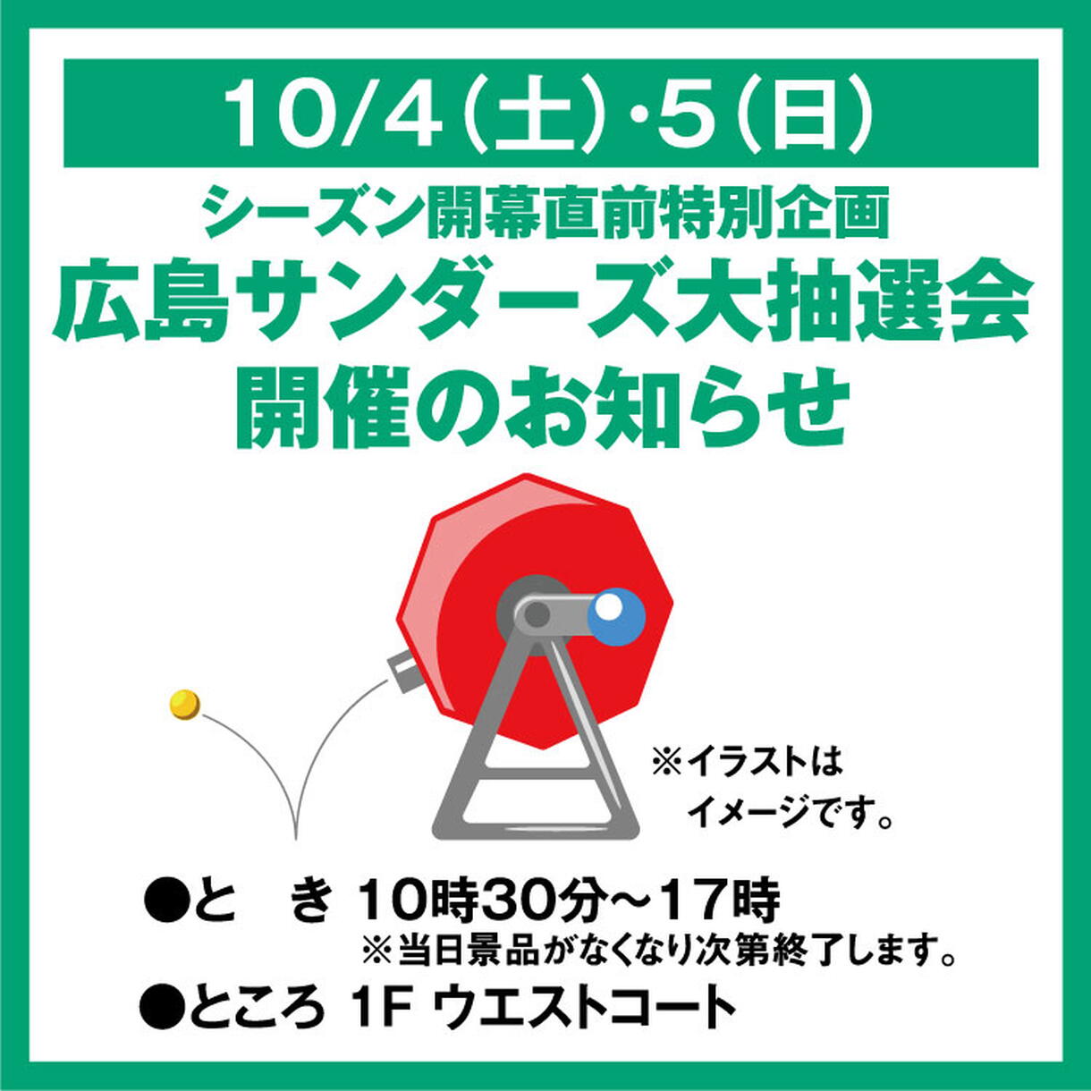 シーズン開幕直前特別企画 広島サンダーズ大抽選会 開催のお知らせ