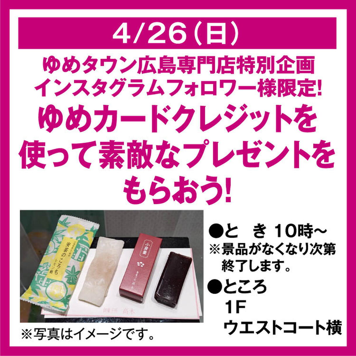ゆめタウン広島専門店 特別企画 インスタグラムフォロワー様限定! ゆめカードクレジットを使って素敵なプレゼントをもらおう!