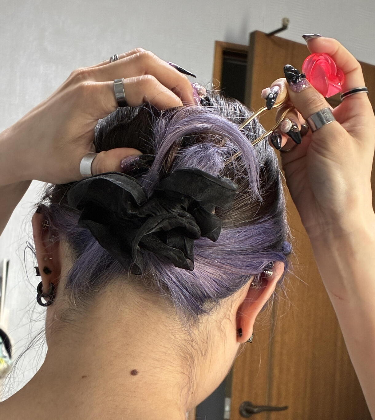 一本持っておけば、急に外食になった際や、暑い時にも夜会巻きのようにアレンジ可能!