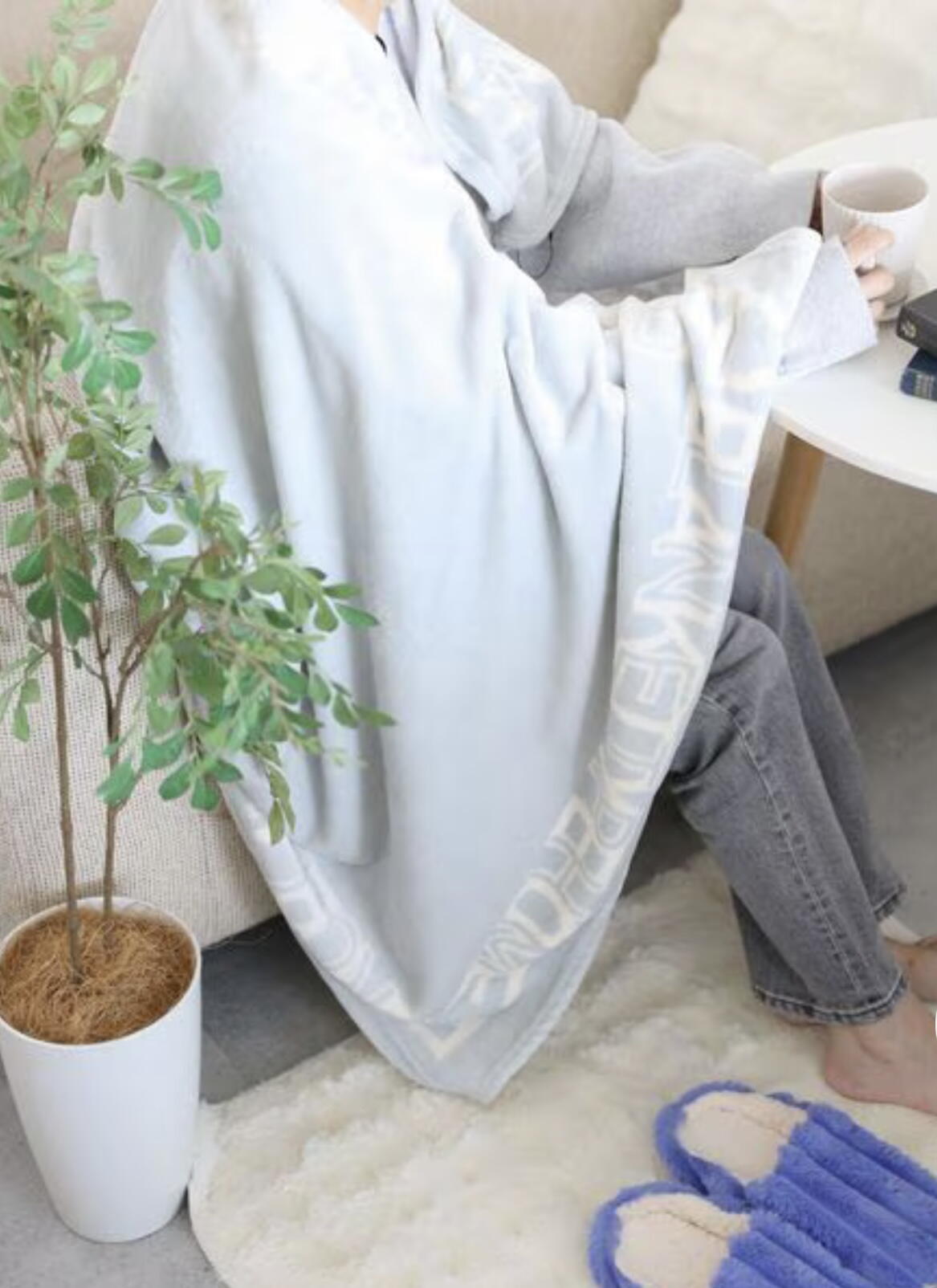 シンプルな英語デザインが映える、ふんわりブランケット。