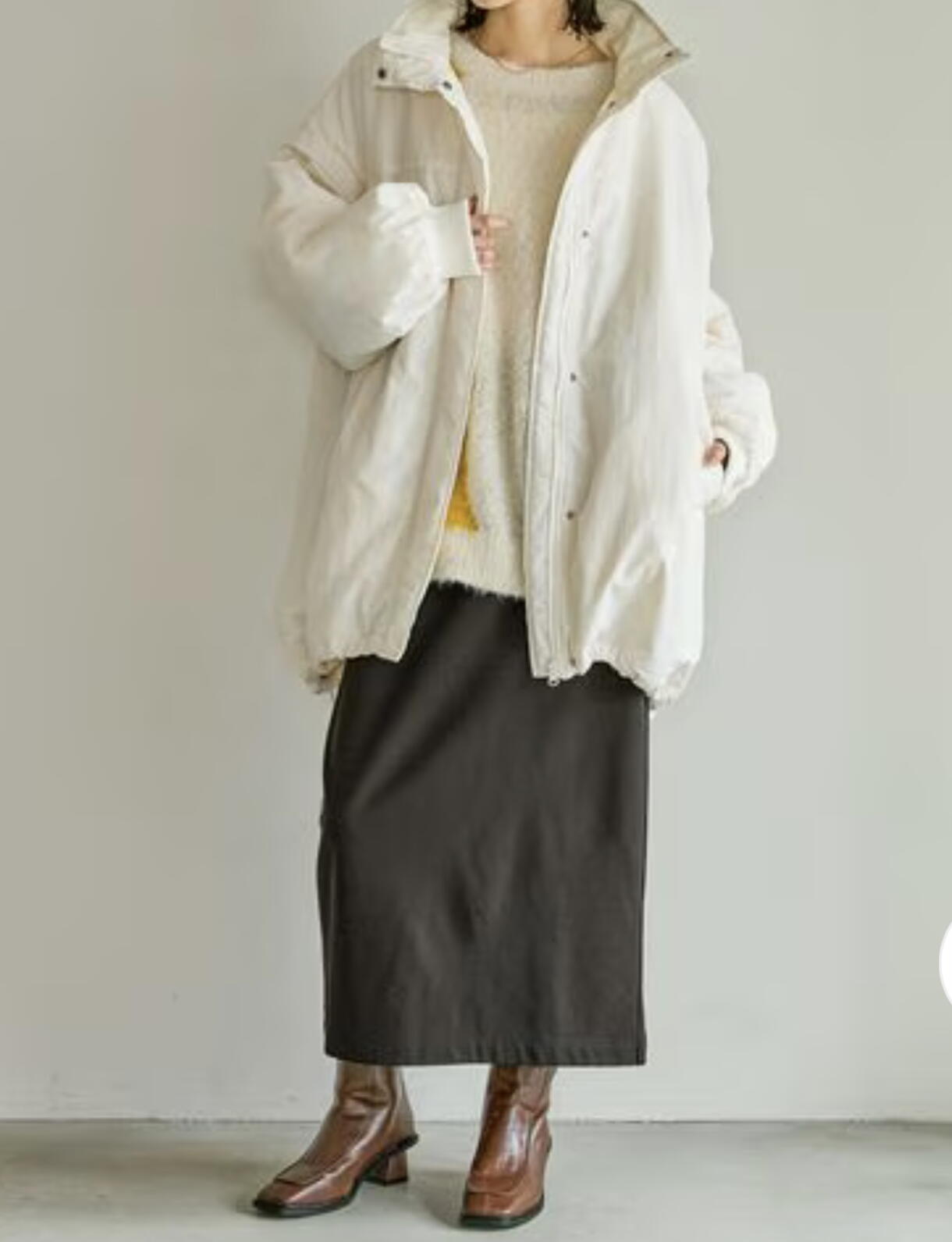 身幅や肩回りにゆとりがあり、厚手のトップスも合わせやすいのもポイント。