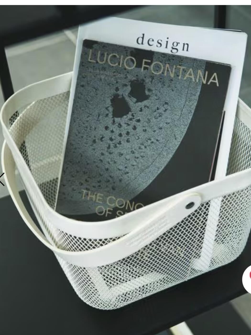 フェイクレザーの持ち手を使用した、ワイヤーバスケット。