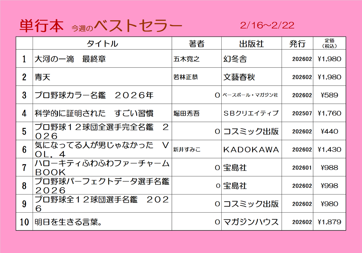 紀伊國屋書店ゆめタウン広島店の先週の売上ランキングを発表します!