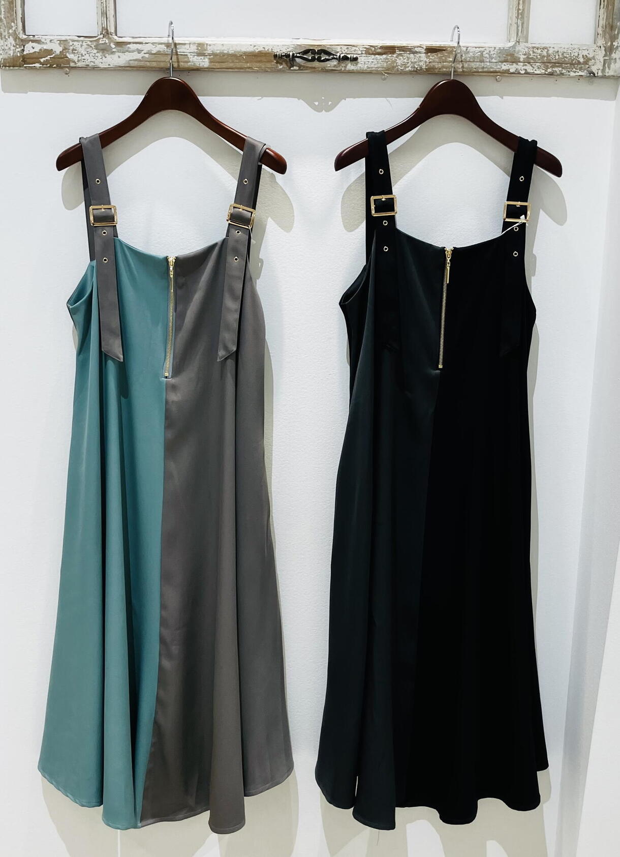マテリアルらしい配色が魅力的なバイカラージャンパースカート♪
