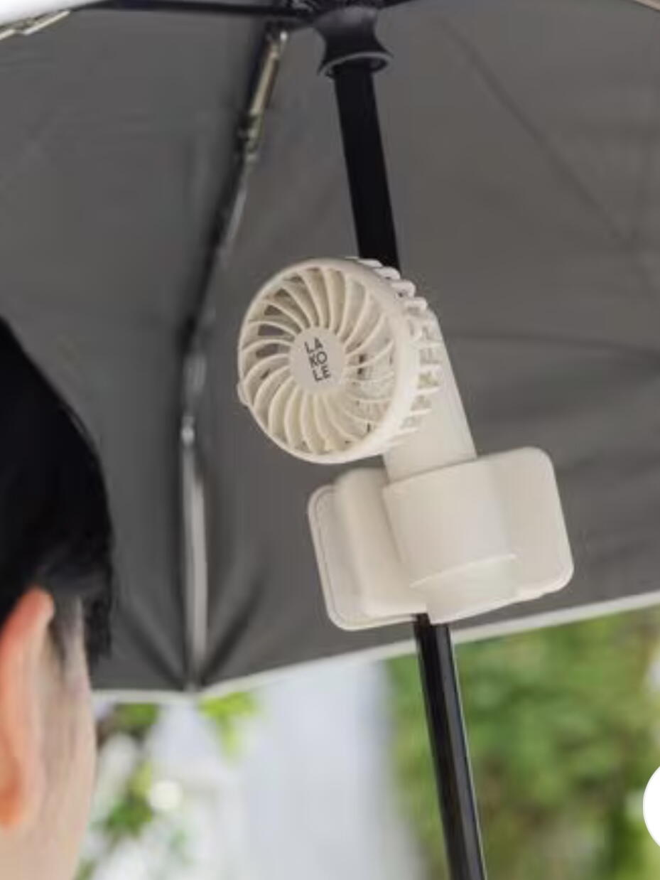 クリップで色々なところに取り付けられる、ミニ扇風機。