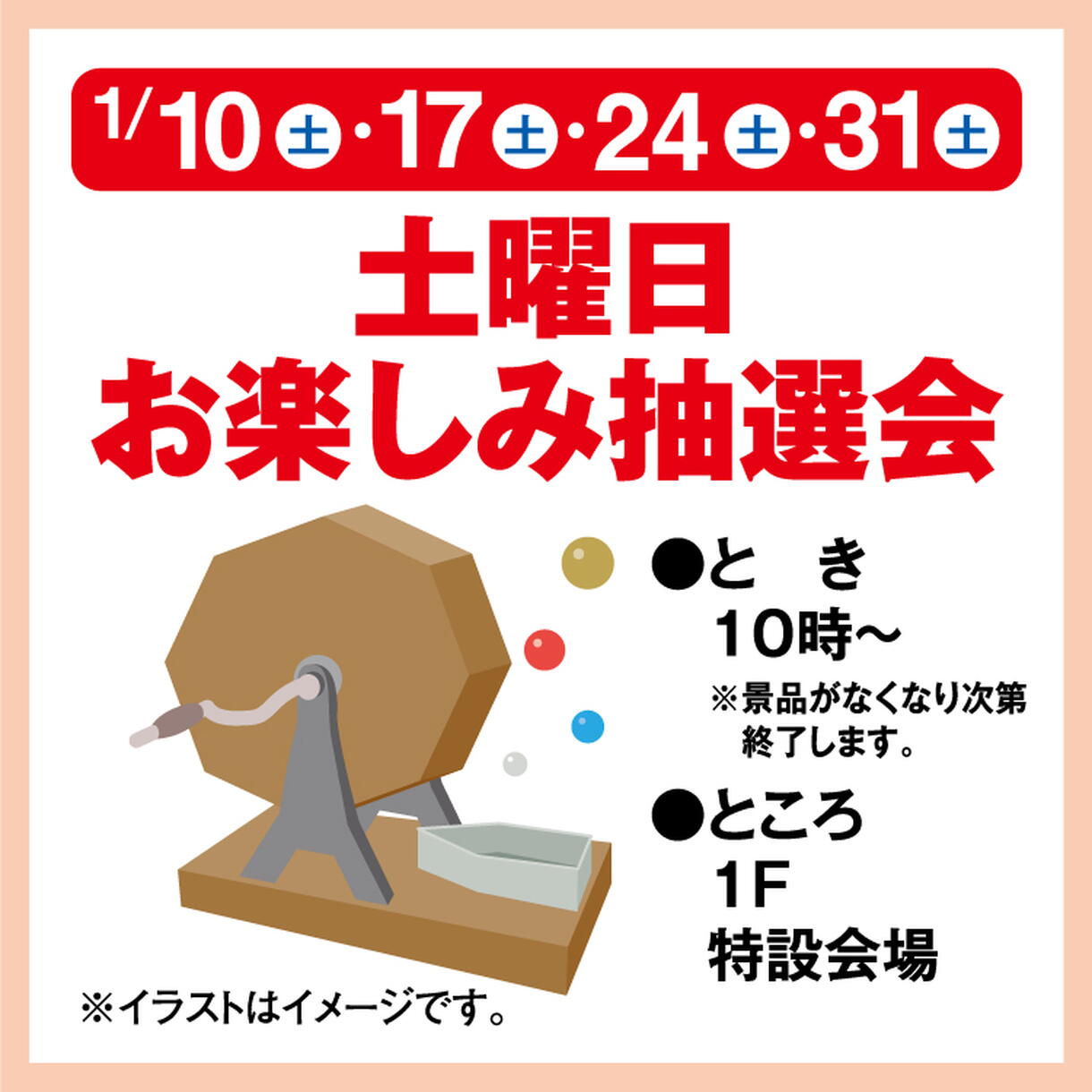 ※1/3(土)の土曜日抽選会はお休みさせていただきます。