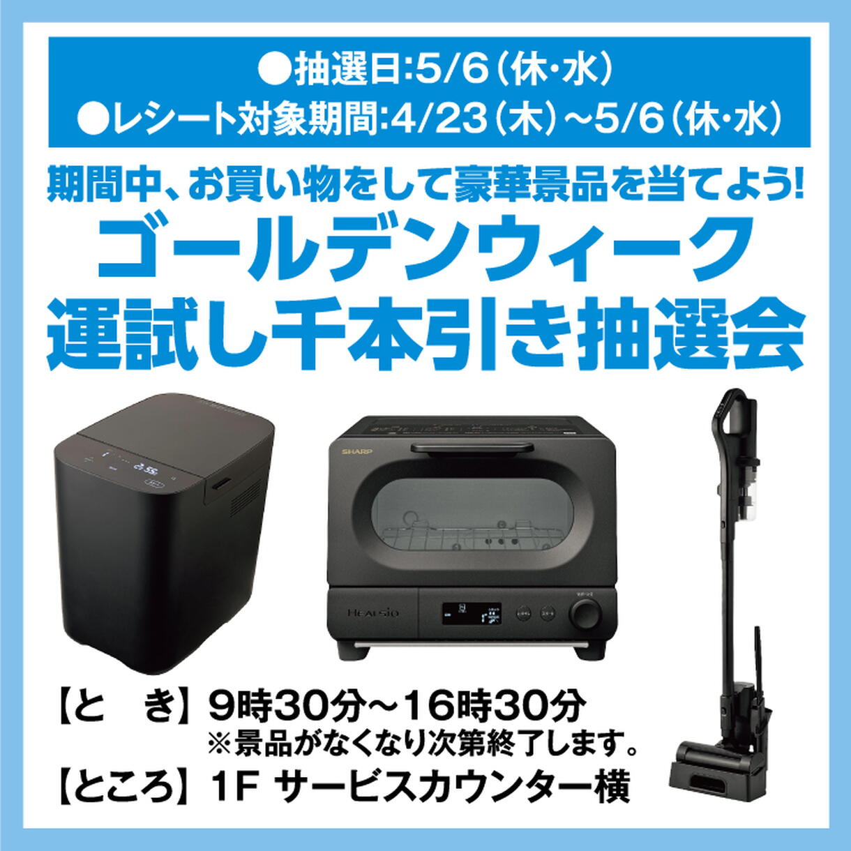 期間中、お買い物をして豪華景品を当てよう! ゴールデンウィーク 運試し千本引き抽選会
