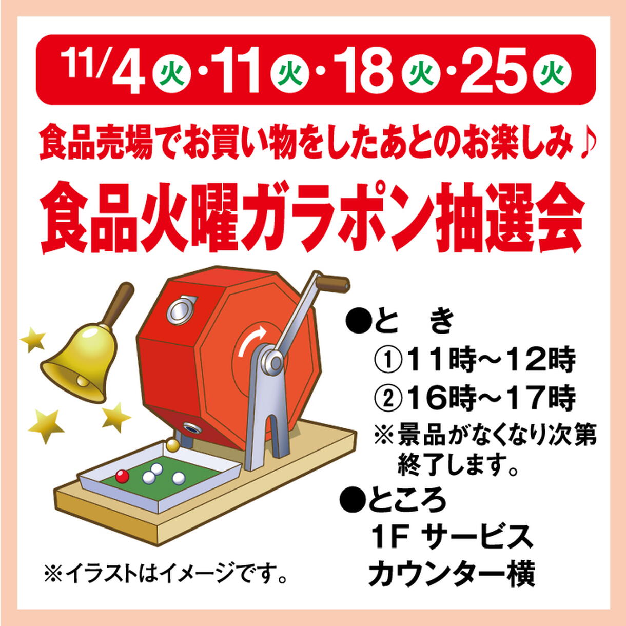 食品売場でお買い物をしたあとのお楽しみ♪ 食品火曜ガラポン抽選会