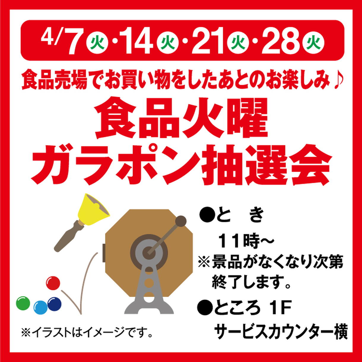 食品売場でお買い物をしたあとのお楽しみ♪ 食品火曜ガラポン抽選会
