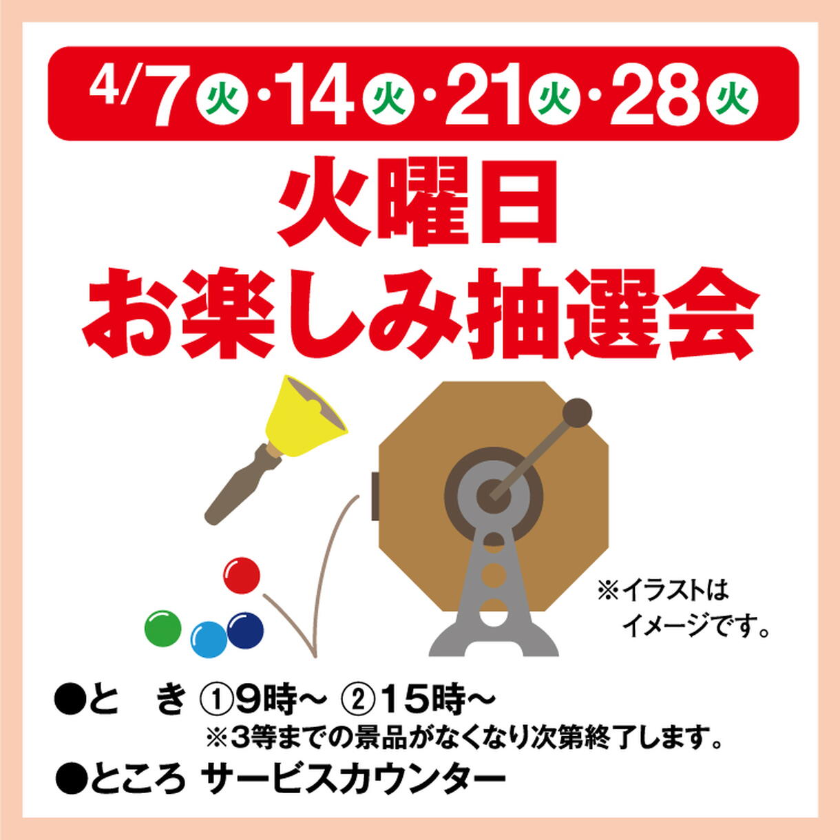 ●期間 4/7(火)・14(火)・21(火)・28(火)