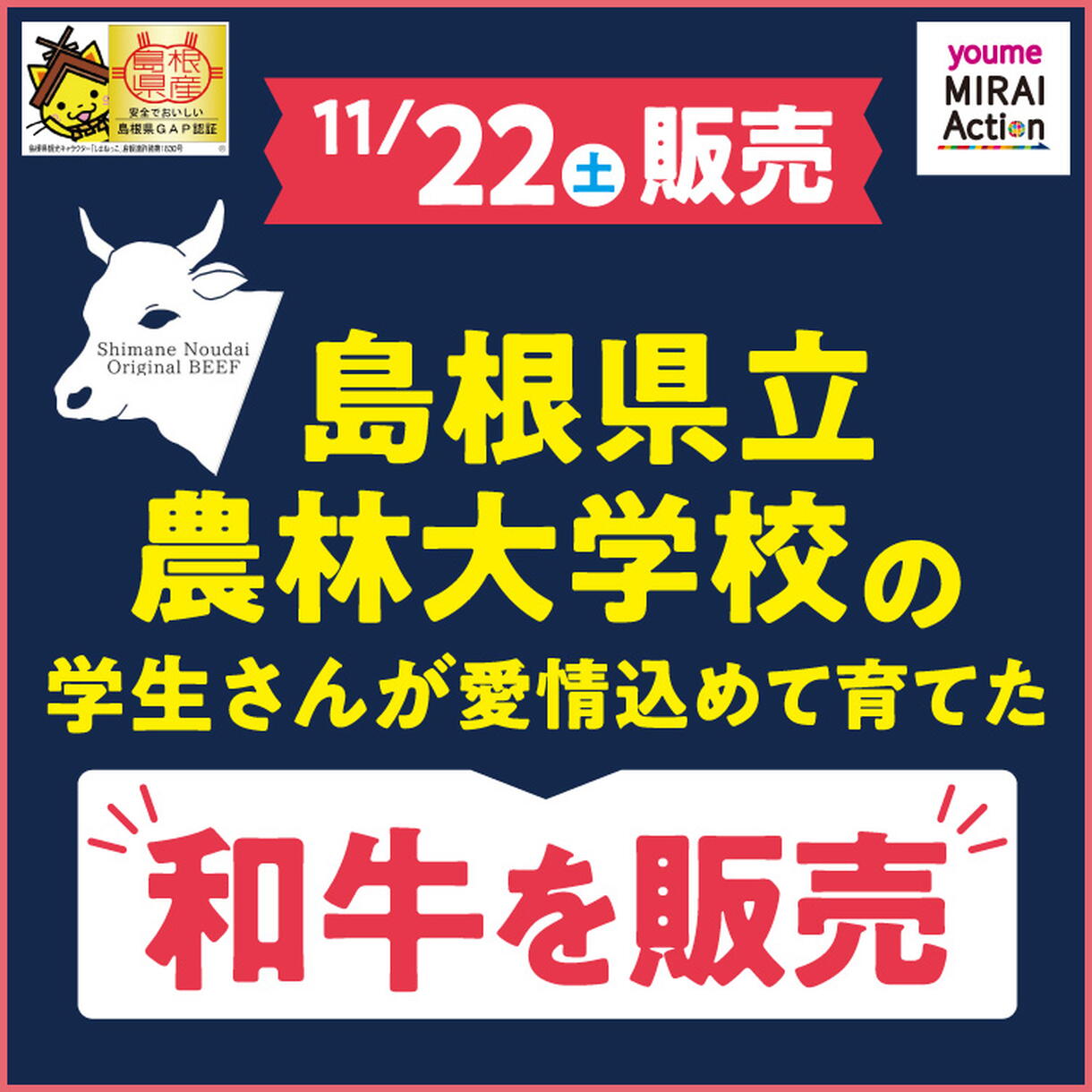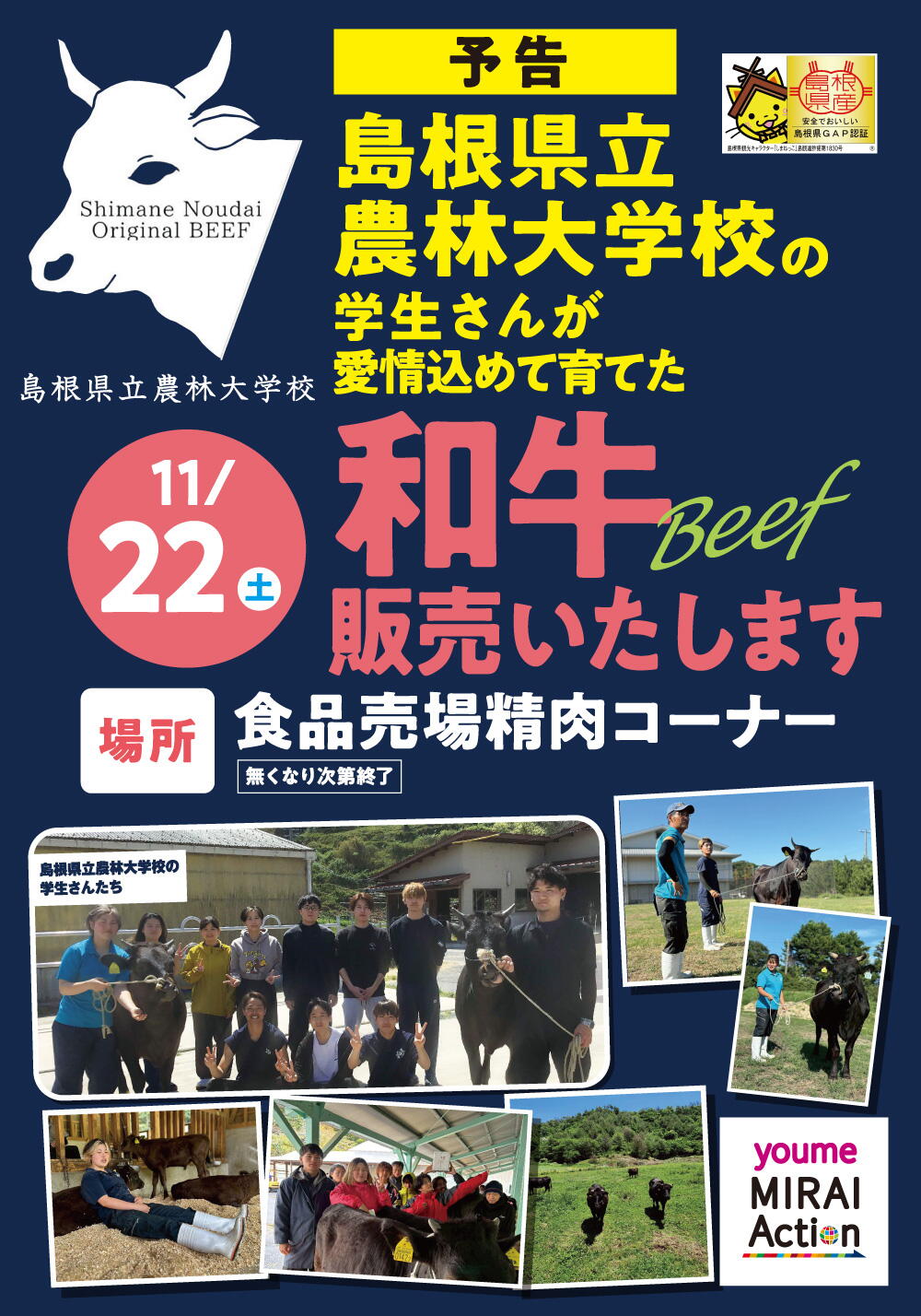 【11月22日(土)】島根県立農林大学校の学生さんが育てた牛肉を販売します。
