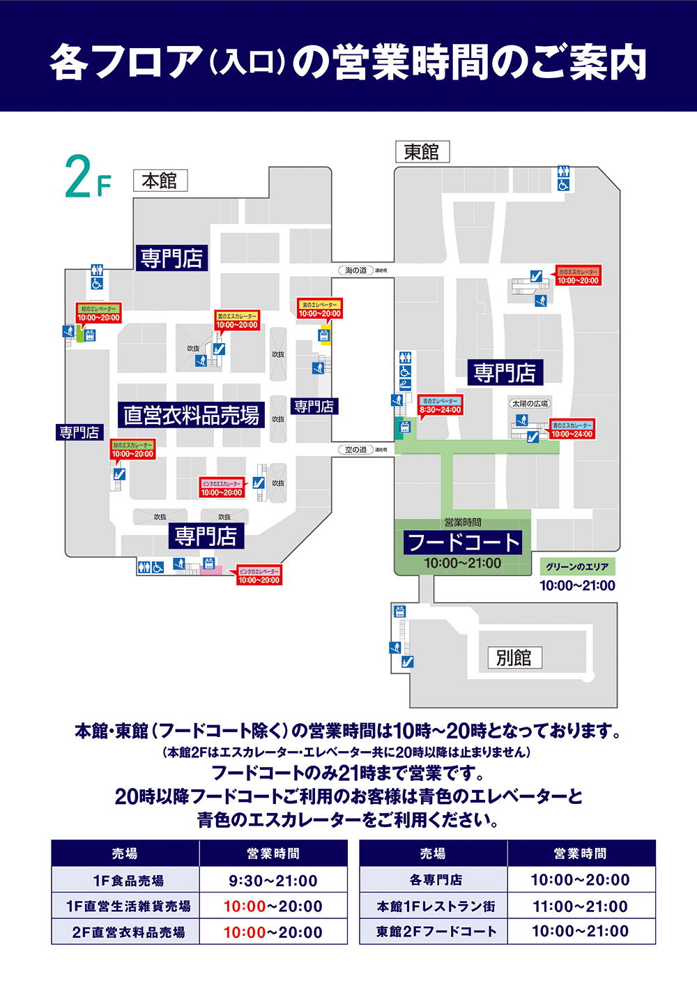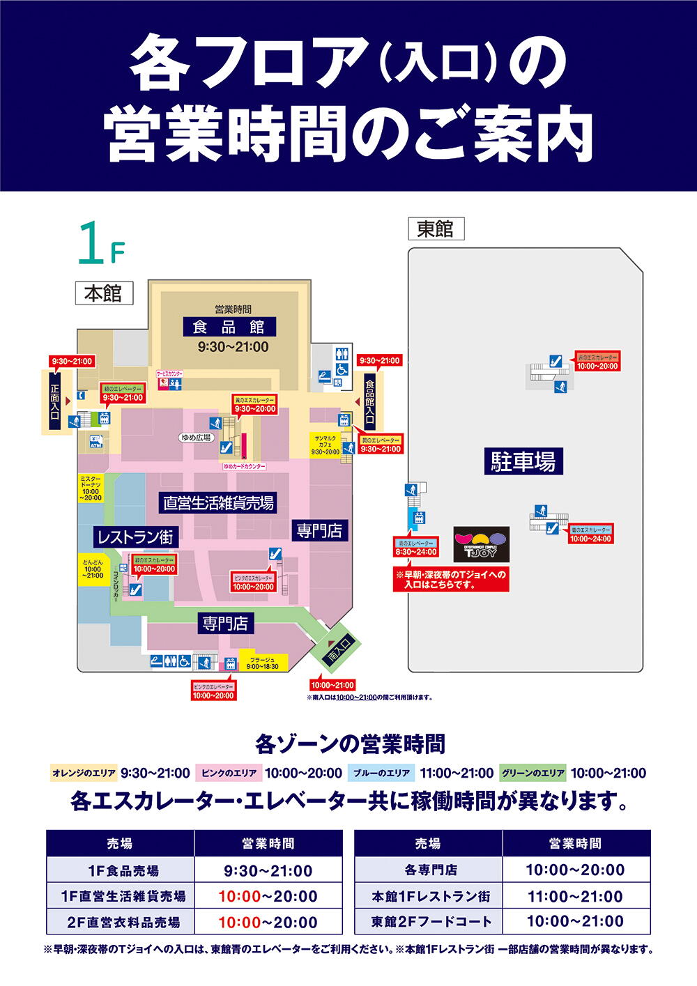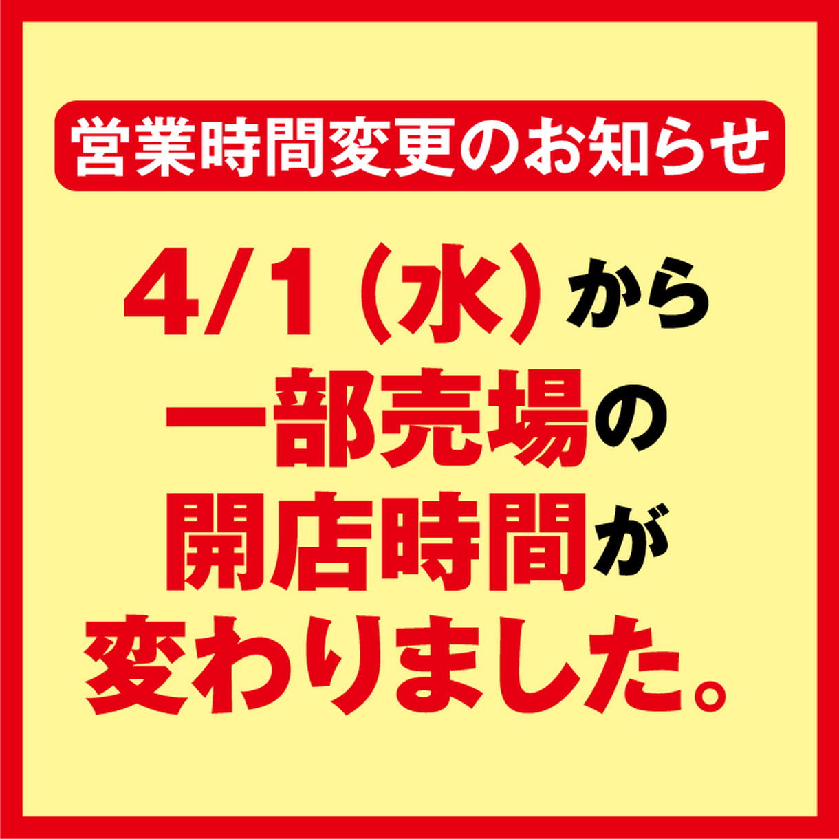 本館1F 食品売場・各専門店の営業時間に変更ありません。